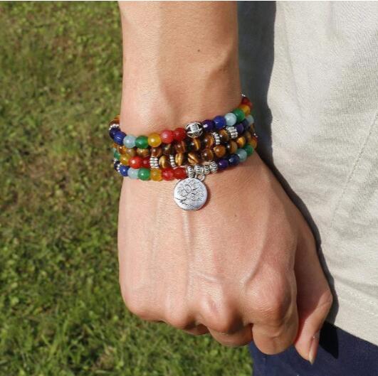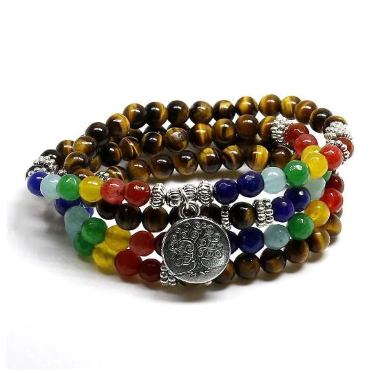 Length of elastic band: 60 cm, can be wrapped in a bracelet or necklace108 natural and semi-precious stonesMaterial: zinc alloy charmGem diameter: 8 mm