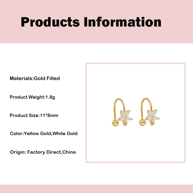 Product information:Color: W80204-GG,W80204-SS Material: copper plated with real gold Style: Women's Shape: Flower Style: ins style Size: 11mm * 8mm