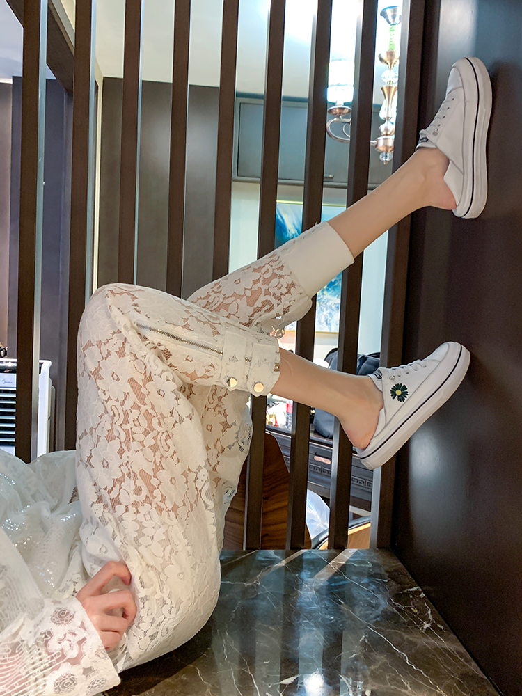 Clothing style details: lace stitching