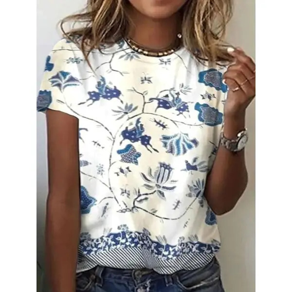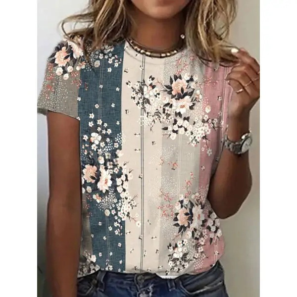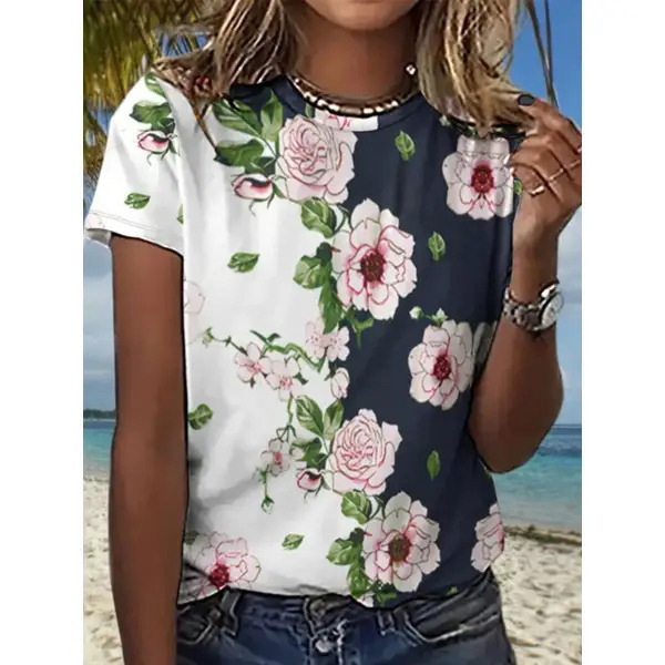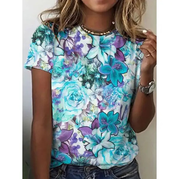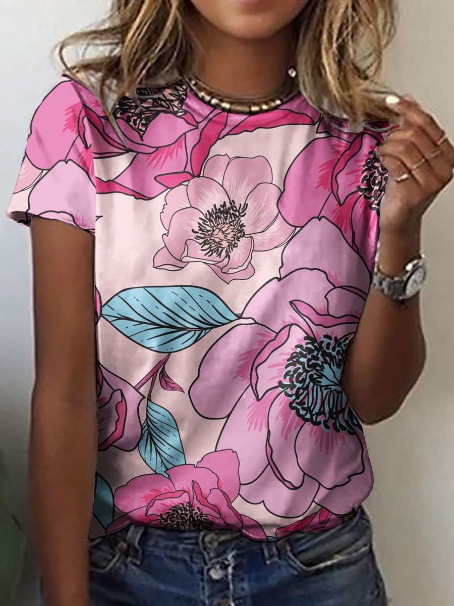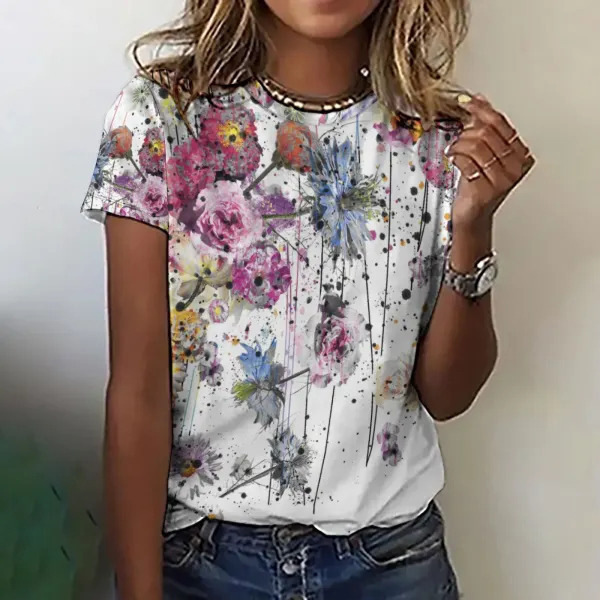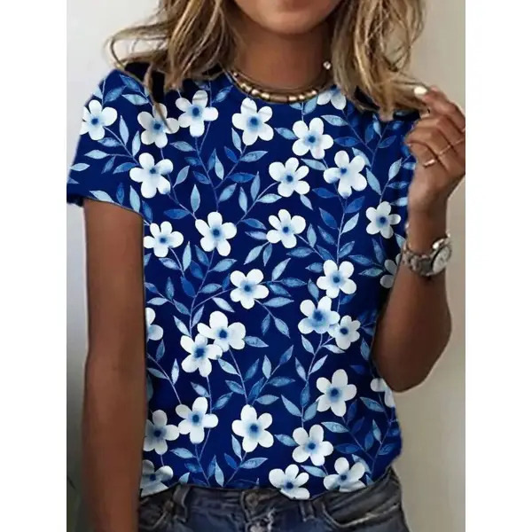 Product information:Pattern: plants and flowers Size: S,M,L,XL,2XL,3XL,4XL,5XL,6XL Main fabric composition: Polyester Sleeve length: short sleeve Process: Printing Category: T-shirt