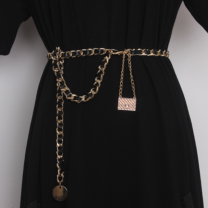 Color: black/gold, white/gold, black/silver, white/silverMaterial: PU leather rope + alloySIZE: Waist circumference/can be adjusted freely, total length 110, width 1