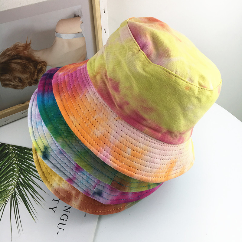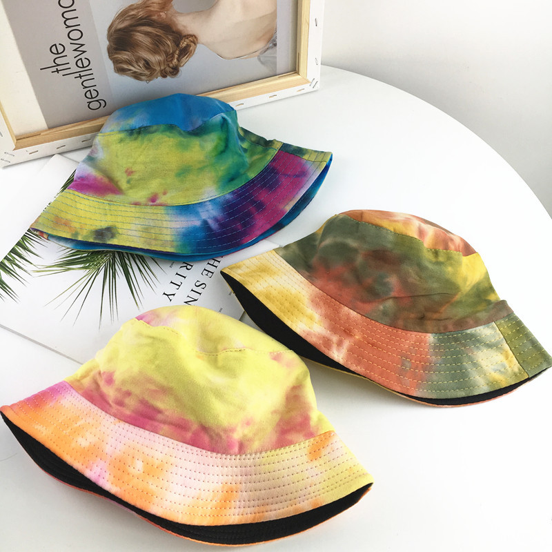 Color tie-dye double-sided basin hat--yellow + pink, tie-dye double-sided basin hat--blue + yellow, tie-dye double-sided basin hat--military green + orange