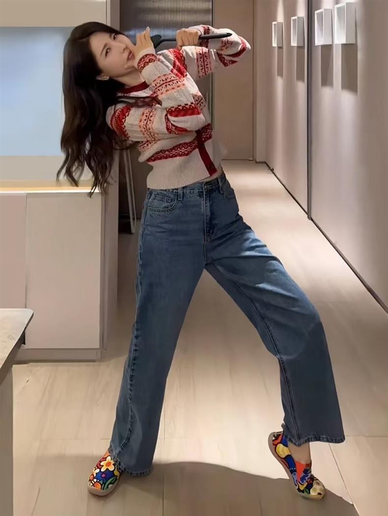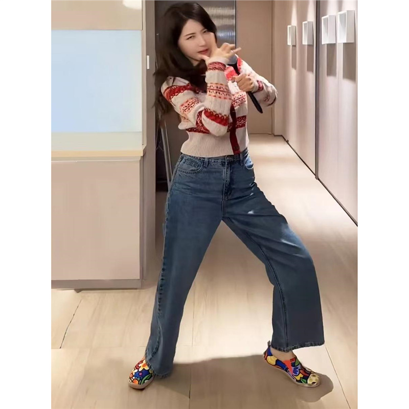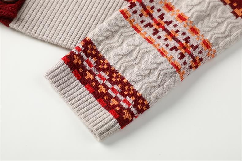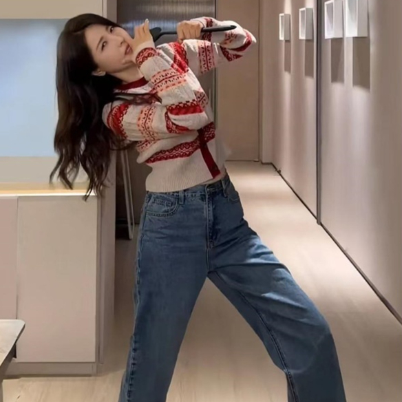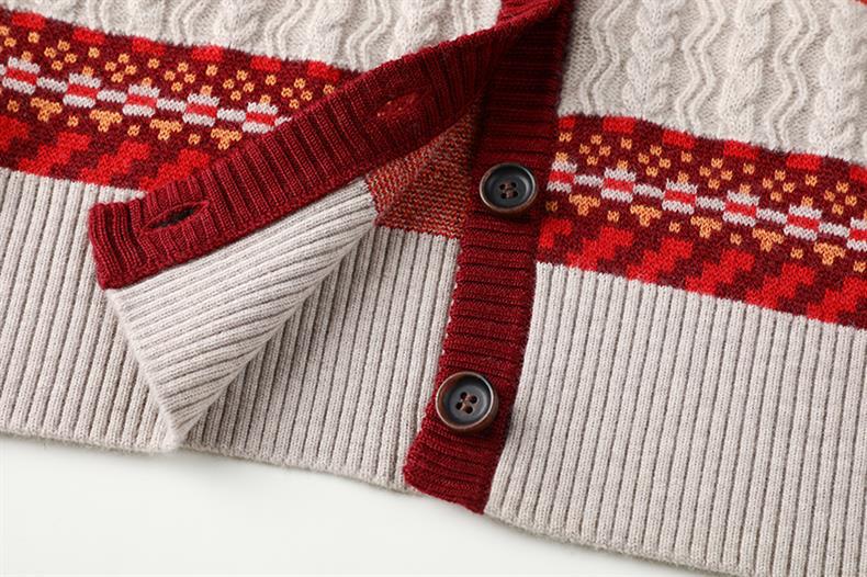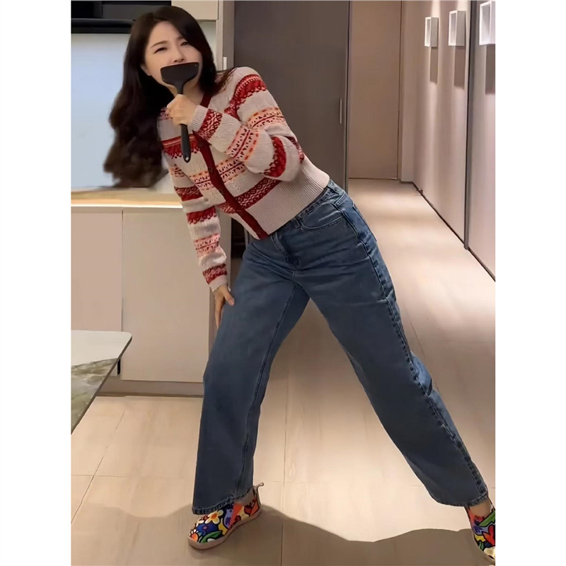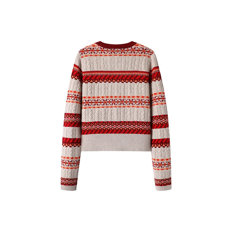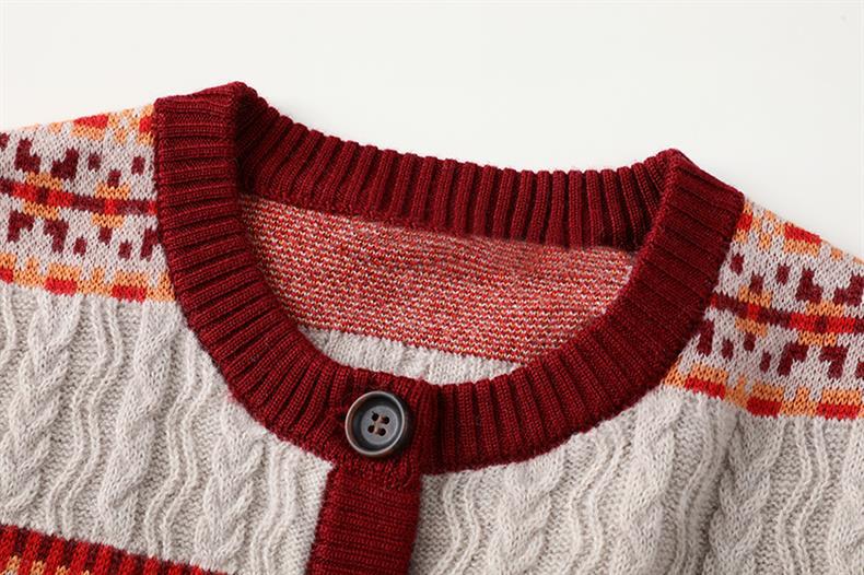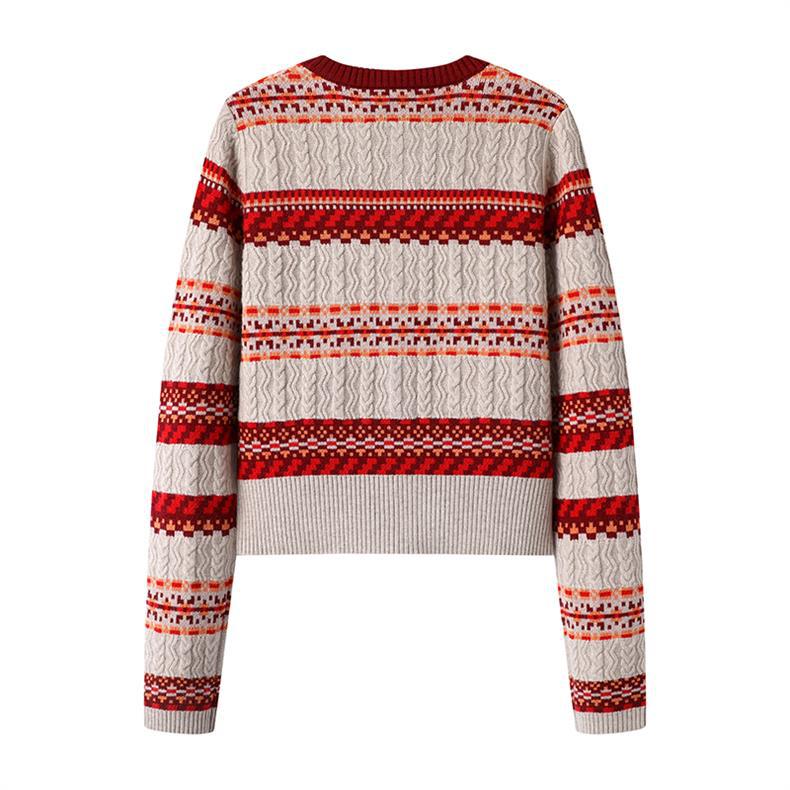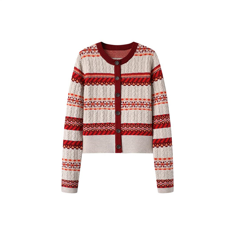 Red Striped Knitted Cardigan Round Neck Western Style Youthful-looking Top For Women