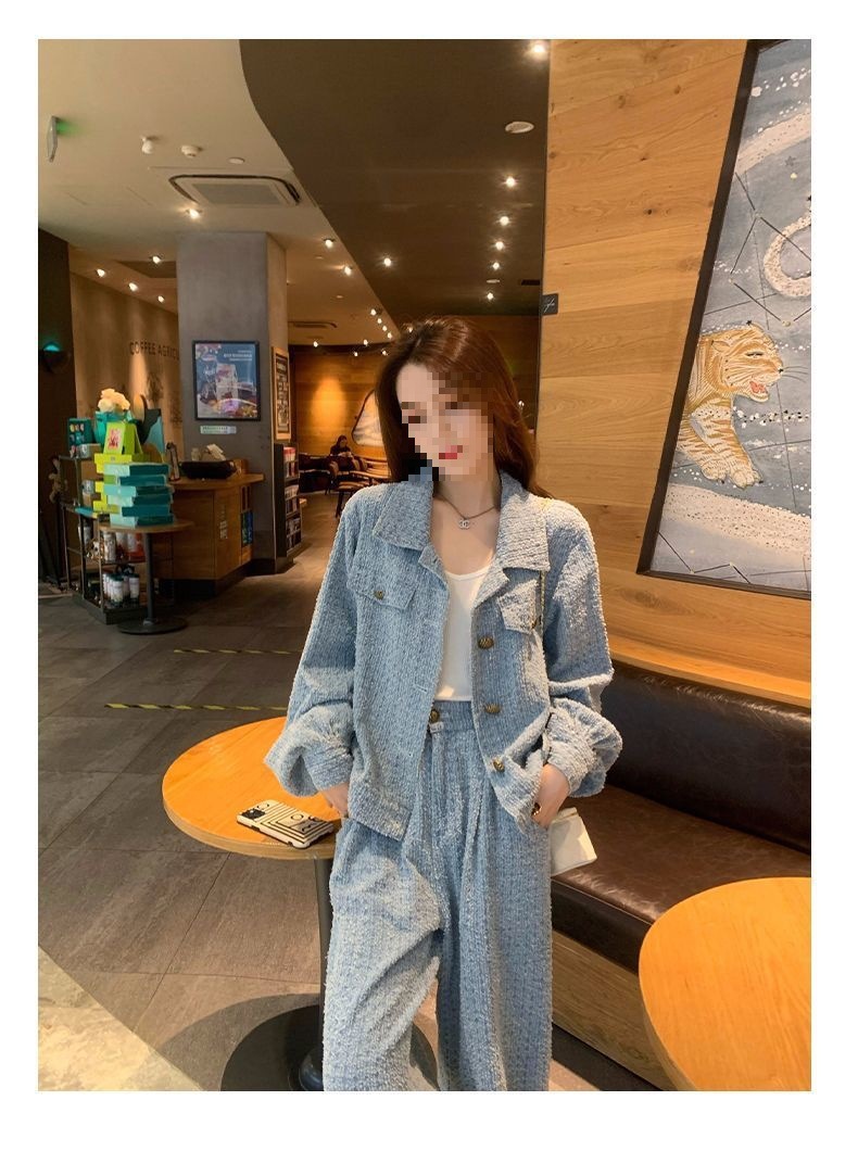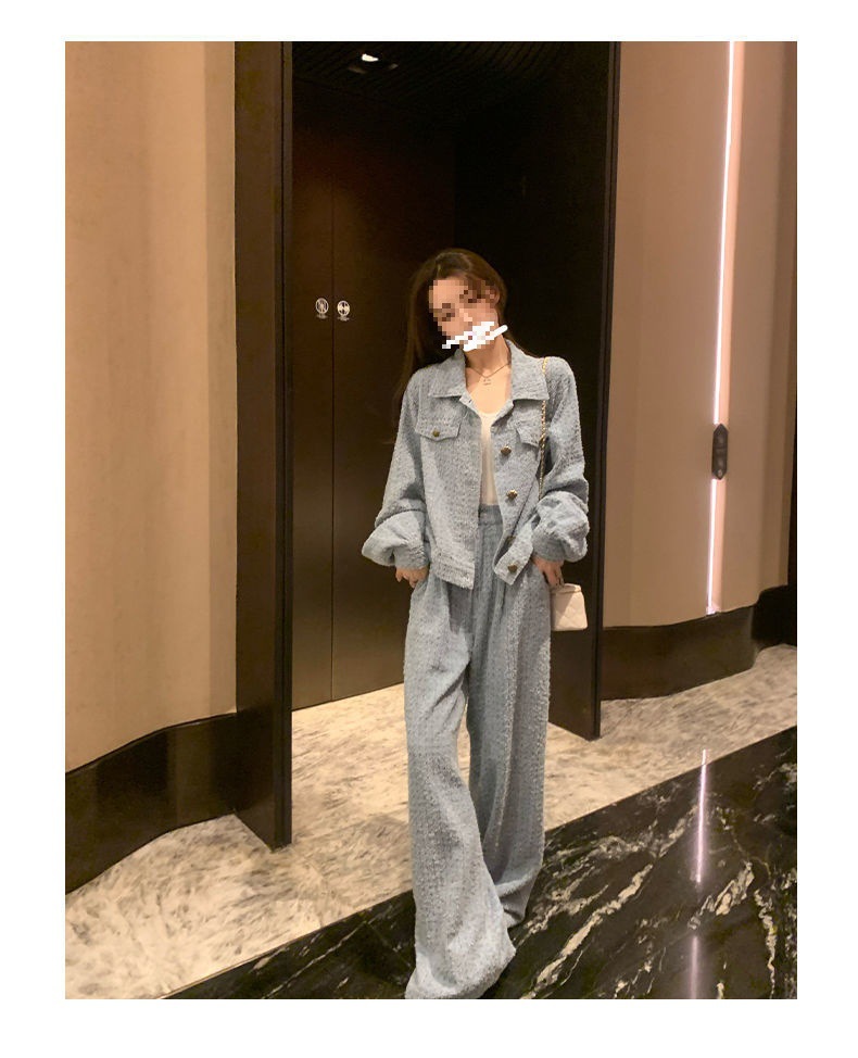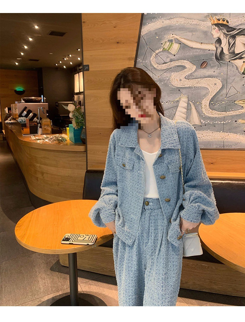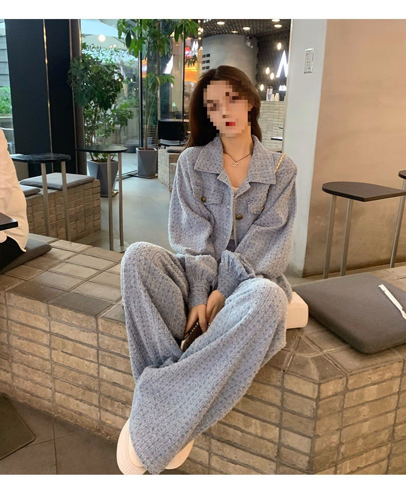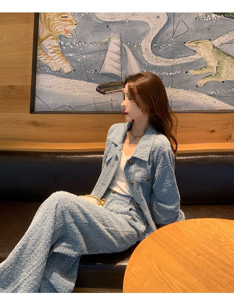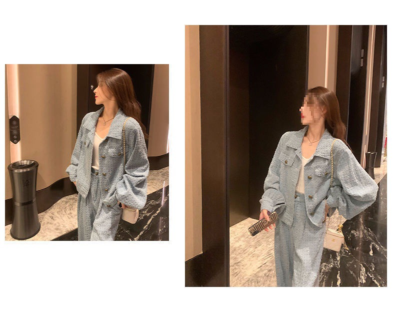 Product information: Fabric name: Polyester Color: Picture color (two-piece set) Pants length: trousers Size: S,M,L,XL Sleeve length: long sleeve Popular elements: Button