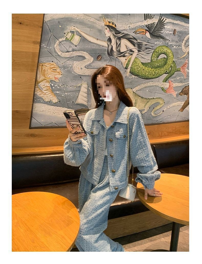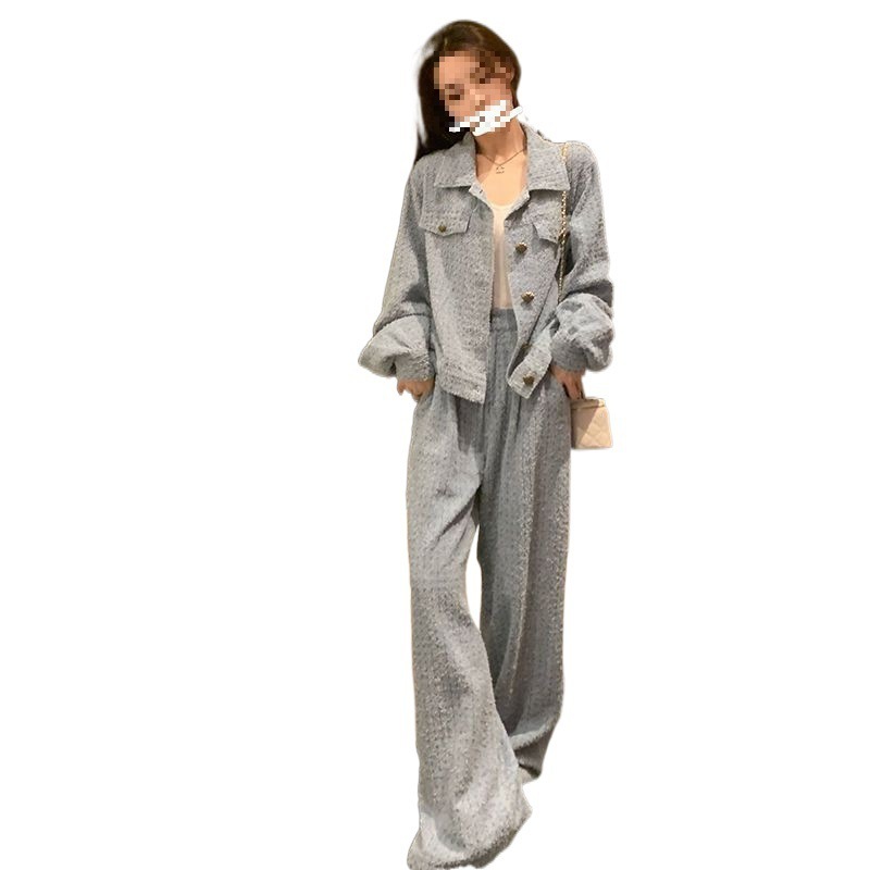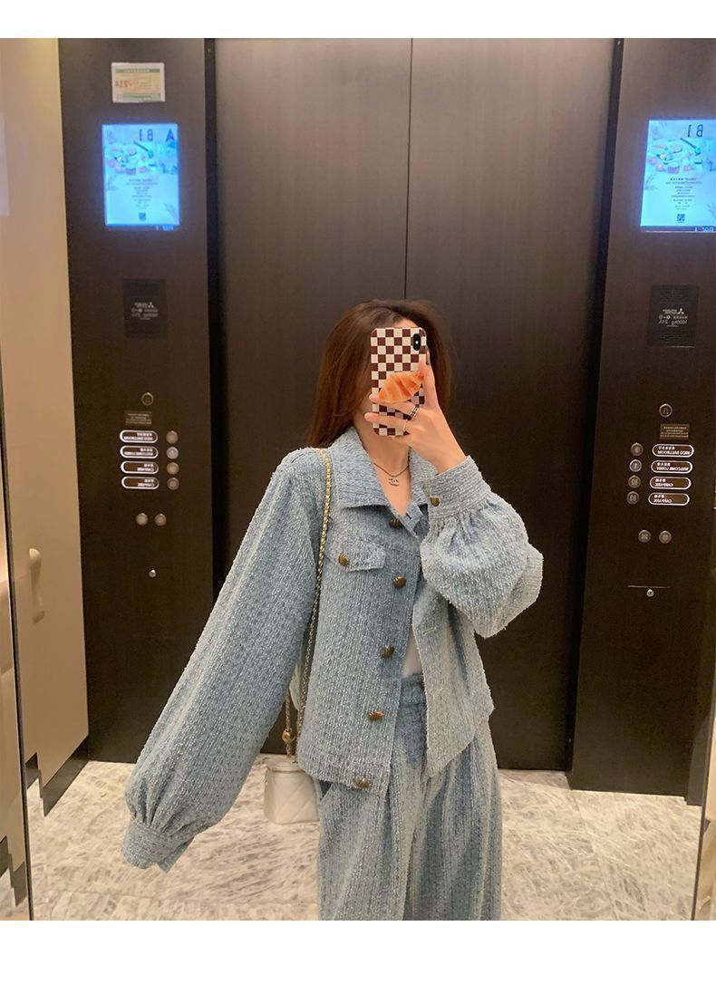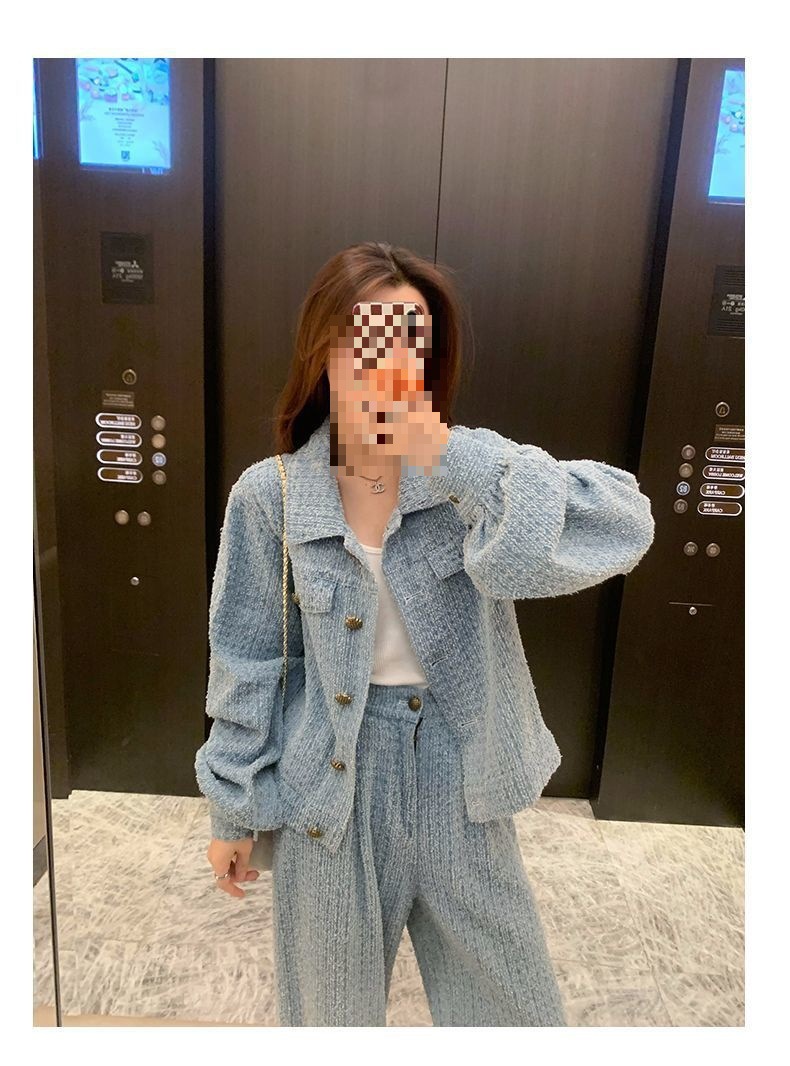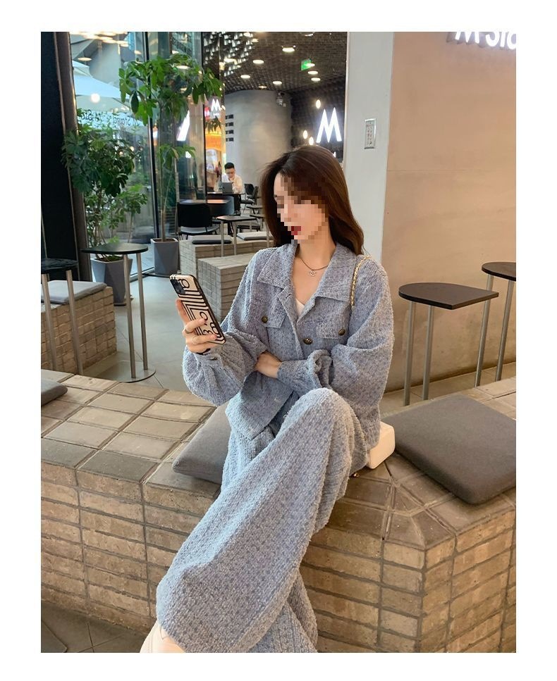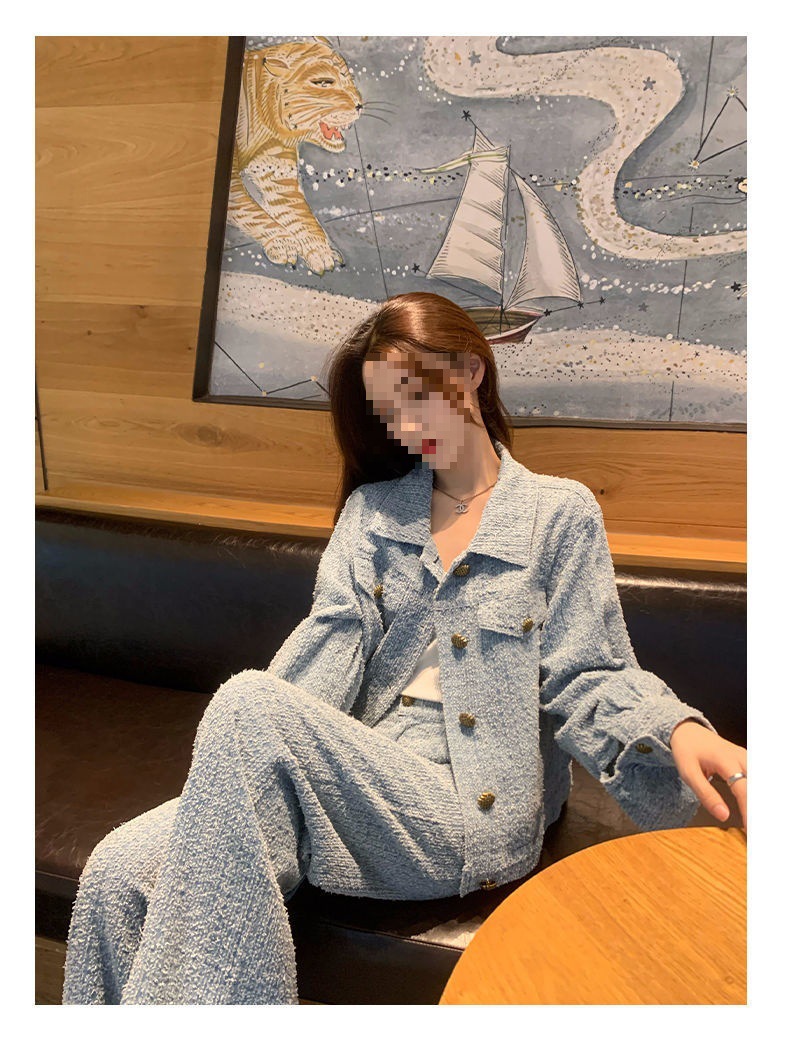 Product information: Fabric name: Polyester Color: Picture color (two-piece set) Pants length: trousers Size: S,M,L,XL Sleeve length: long sleeve Popular elements: Button