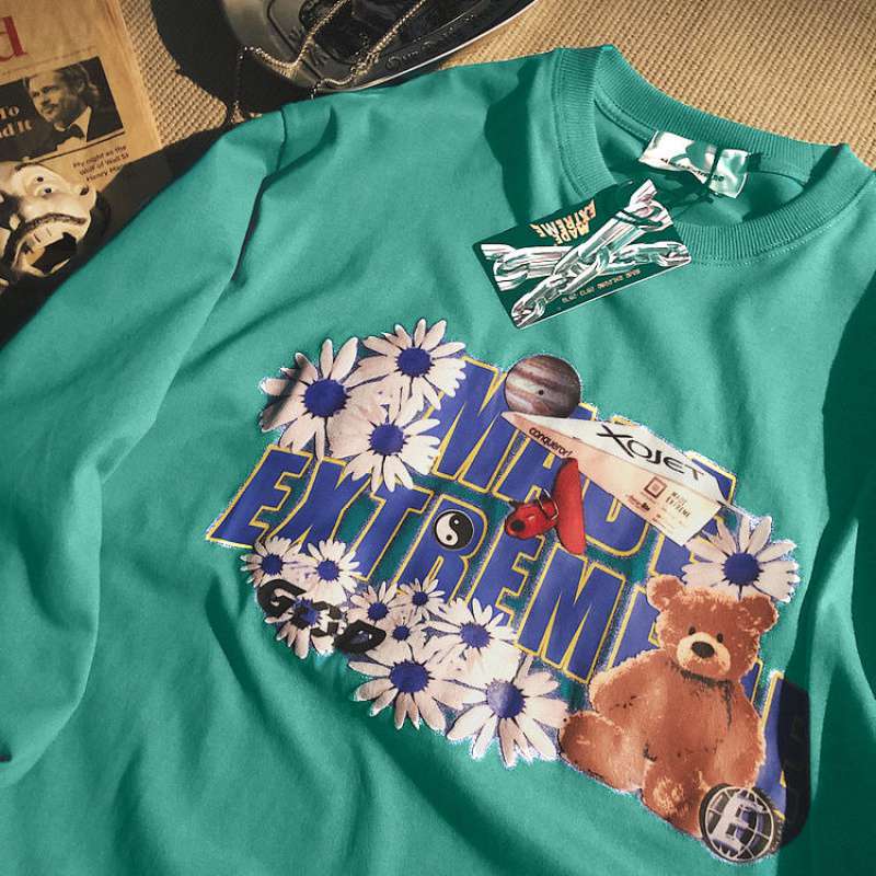 Color: Daisy Bear Lake Green Regular Thin Round Neck Sweater, Daisy Bear