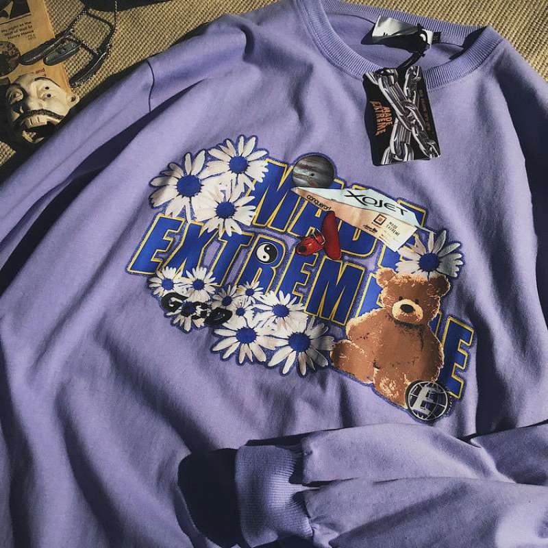Sweater, Daisy Bear Light Purple Regular Thin Round Neck Sweater