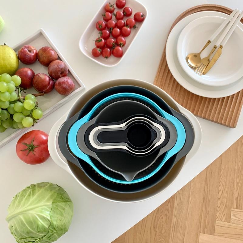 Product Information:Material: PlasticPattern: PlainColor; Red, GrayPacking: Rainbow Salad Plastic Bowl, Measuring Cup, Measuring Spoon, 8 Piece Set x1