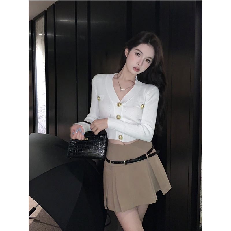 Color classification: White top, black top, coffee color skirt