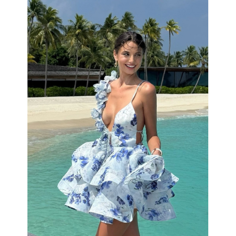 Product information:Color: Picture color, blue Waist Type: Mid waist Size: S,M,L Fabric name: Polyester Skirt Category: Dress Style: sexy style Process: Printing