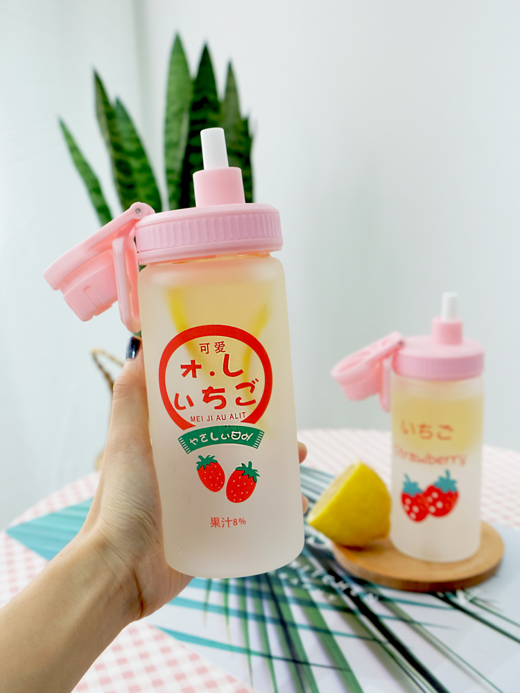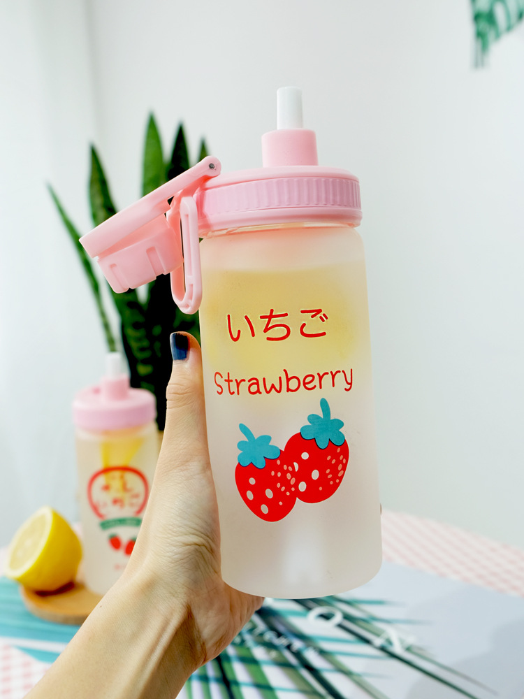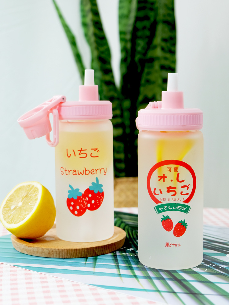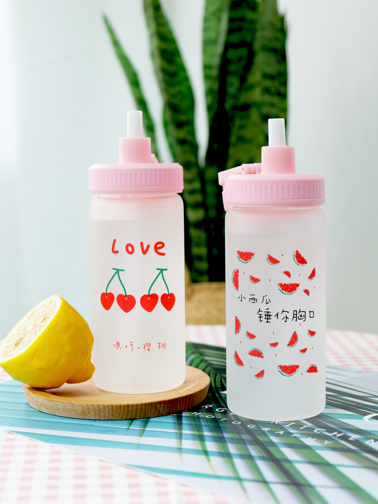 Straw Cup Frosted Summer Large-capacity Glass With Graduated Water Cup
