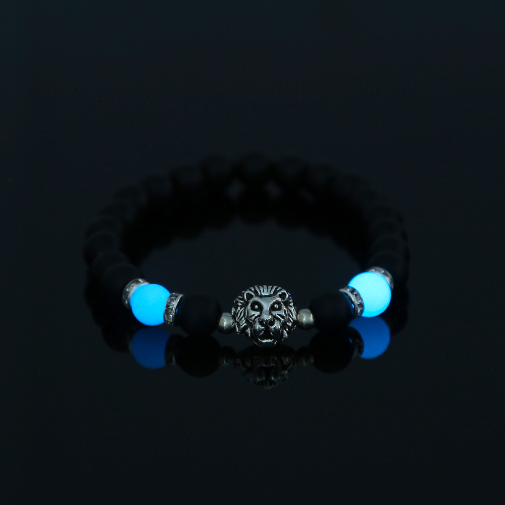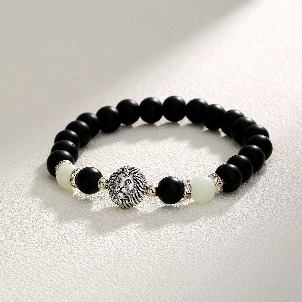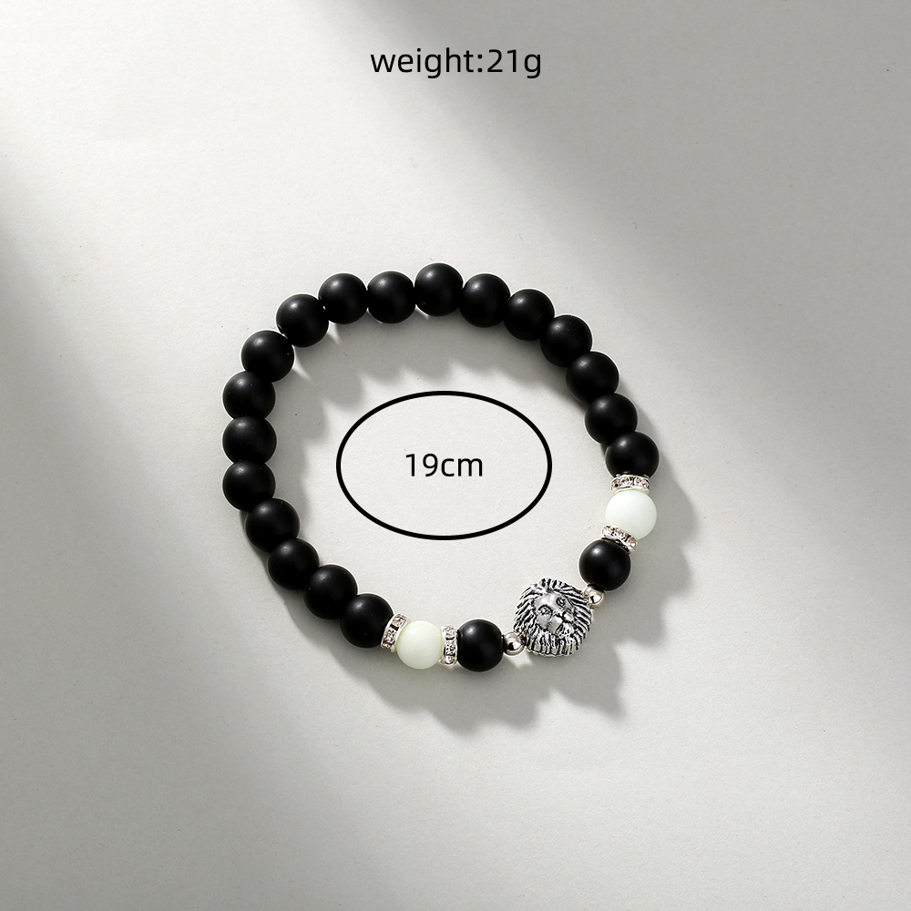 Luminous Running Beads Lion Head Metal Pendant Matte Black Glass Beads Bracelet