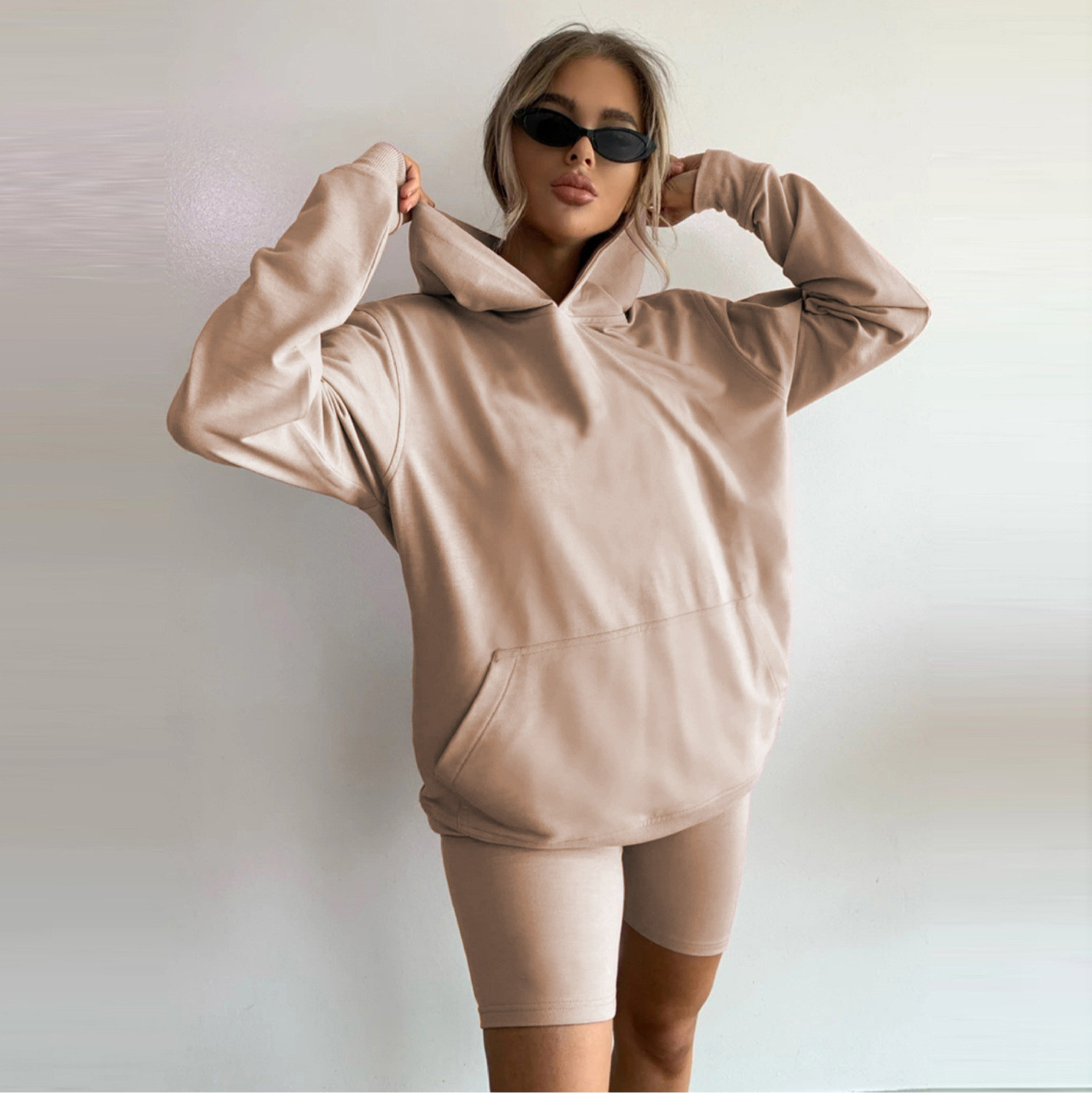 Fashion Casual Home Solid Color Loose Sweater Shorts Sports Suit