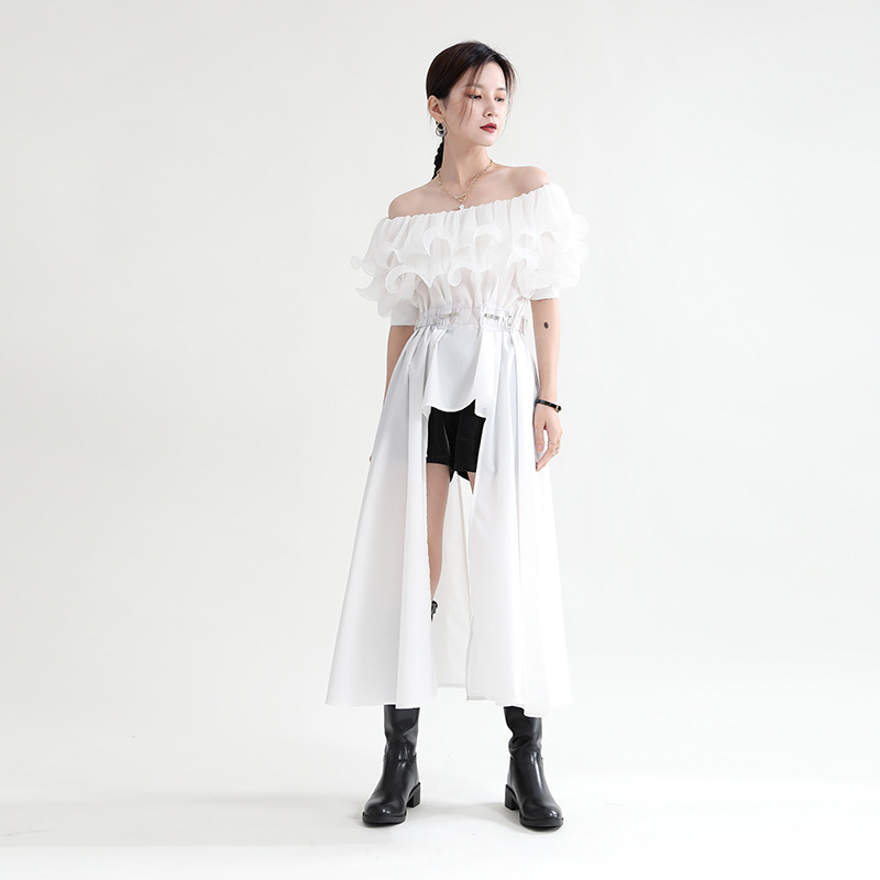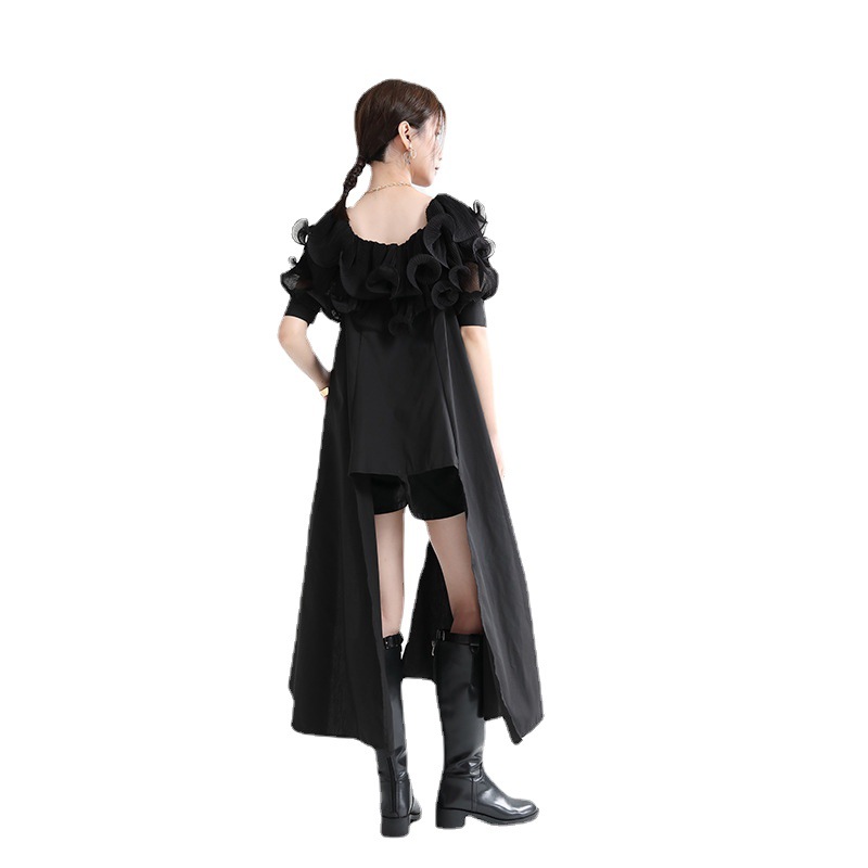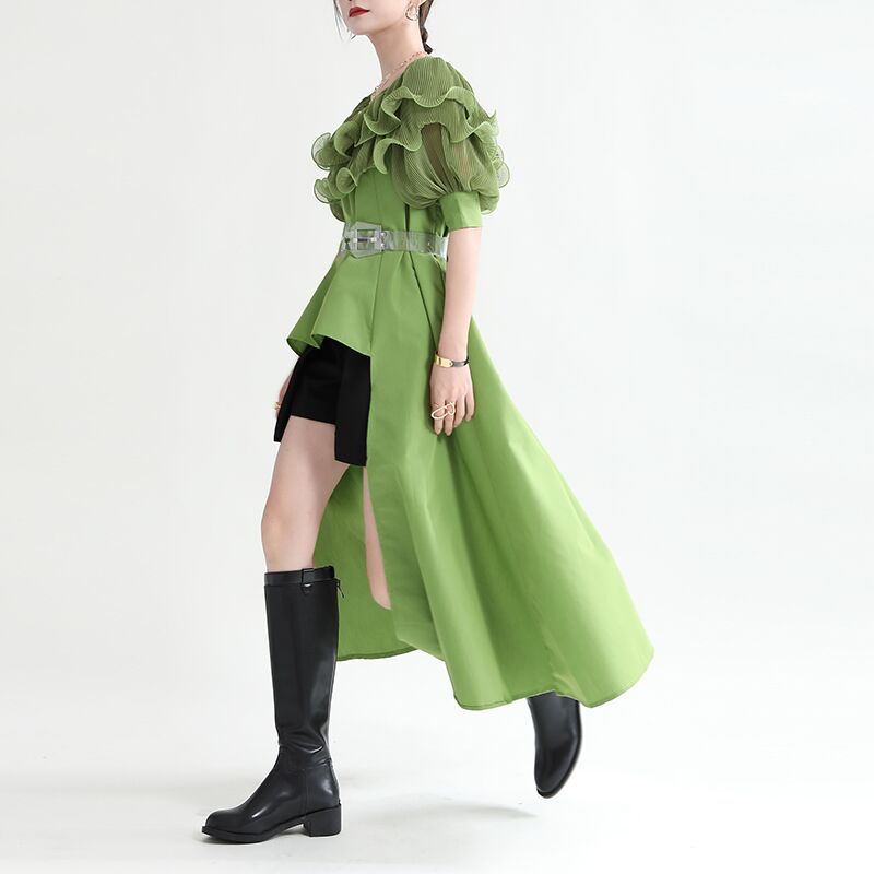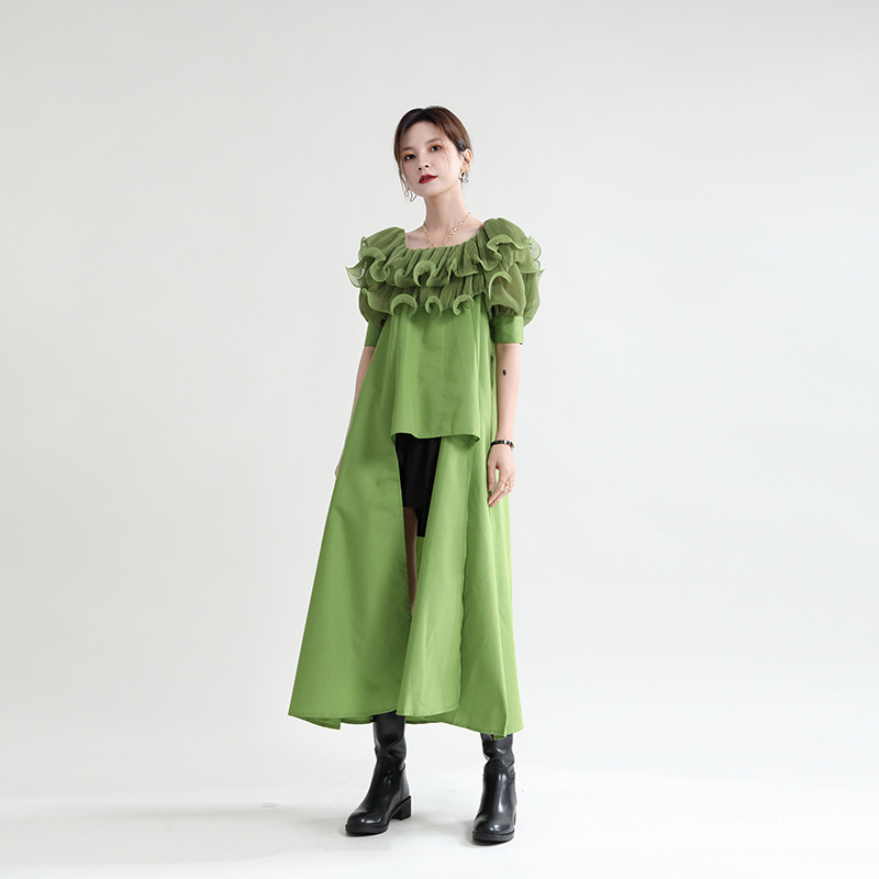 Product information:Craft: collage/splicingStyle: basicCombination form: single pieceSkirt length: mid-length skirtSkirt type: Irregular skirtCollar type: a word collar Packing list:Dress x1