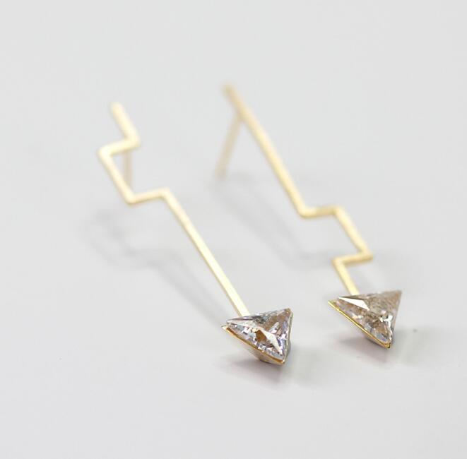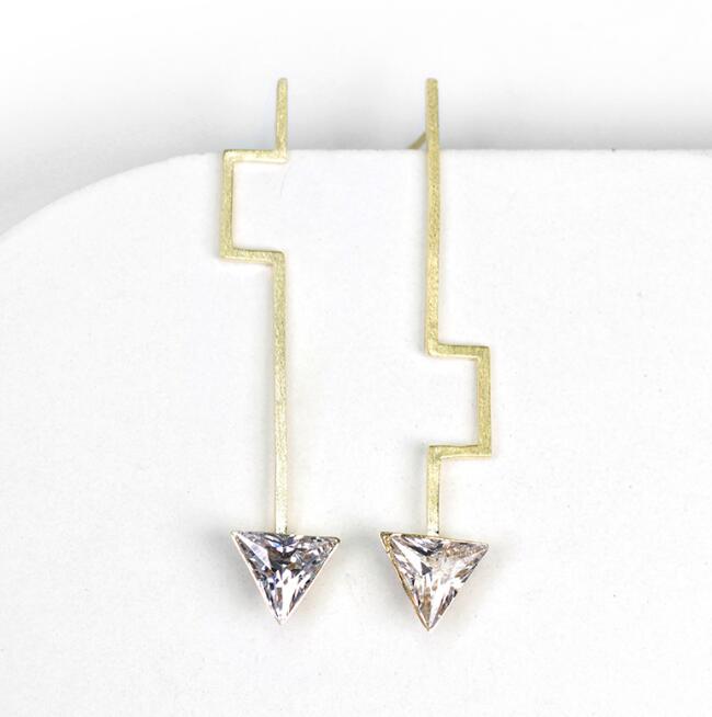 925 Sterling Silver Natural Zirconia fine jewelry handmade modern minimalism design asymmetrical dangle earrings