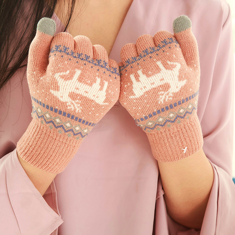 Fawn knit gloves cold warm touch screen wool gloves