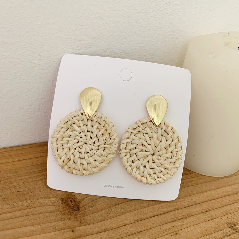 These bohemian vine drop earrings feature two layers of round straws that are fixed to the classic back buckle. Rub your hair to the side for the most striking effect.
