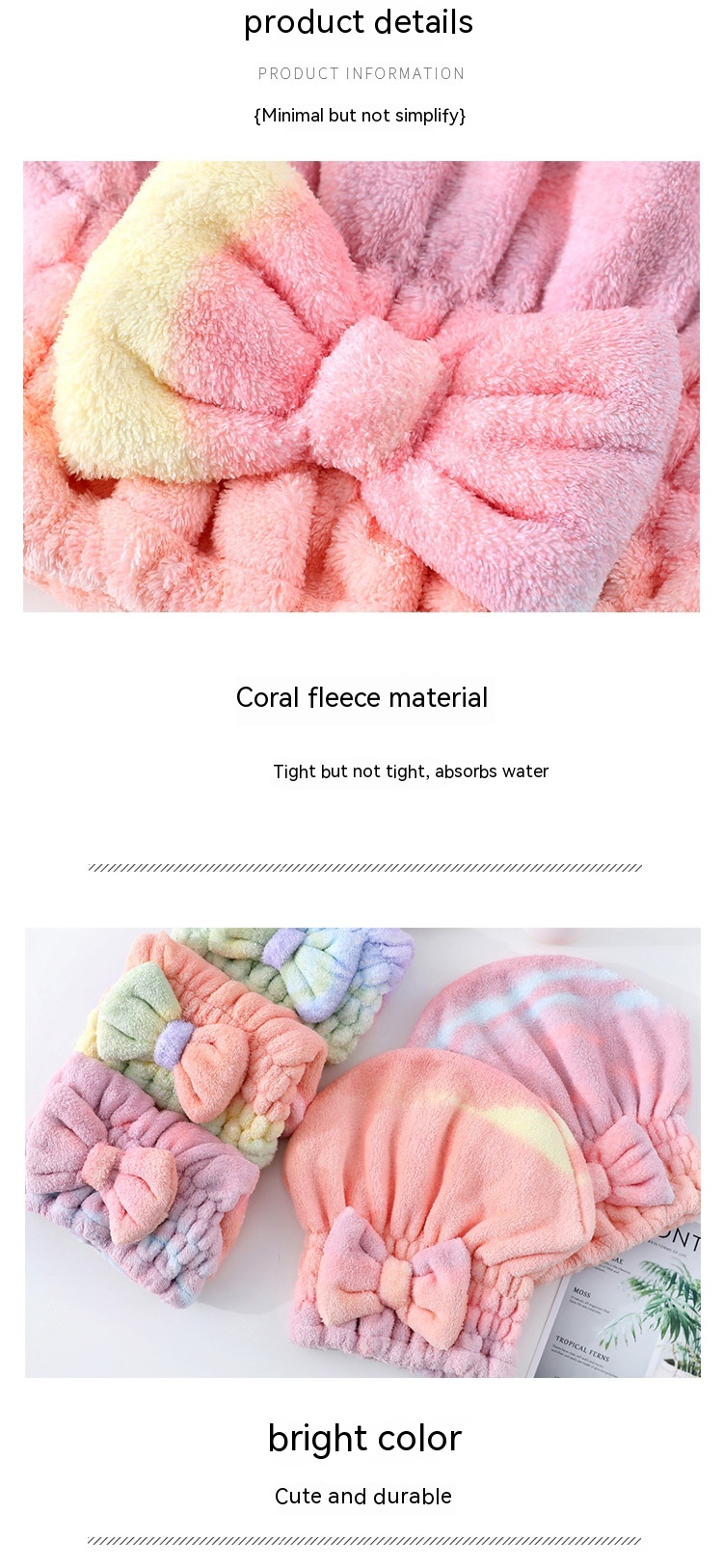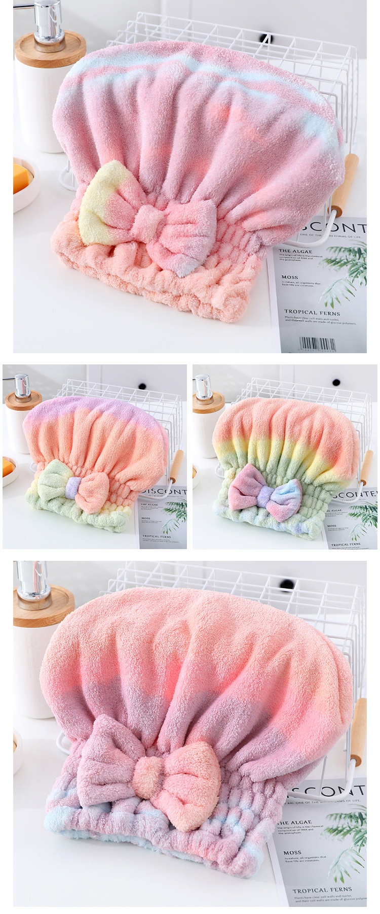 Product information:Color: Rainbow princess hat-gradually varied pink, rainbow princess hat-gradient GreenMaterial: Coral fleeceCategory: hair-drying cap