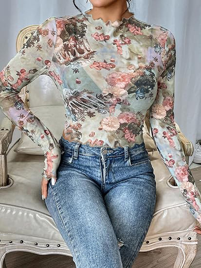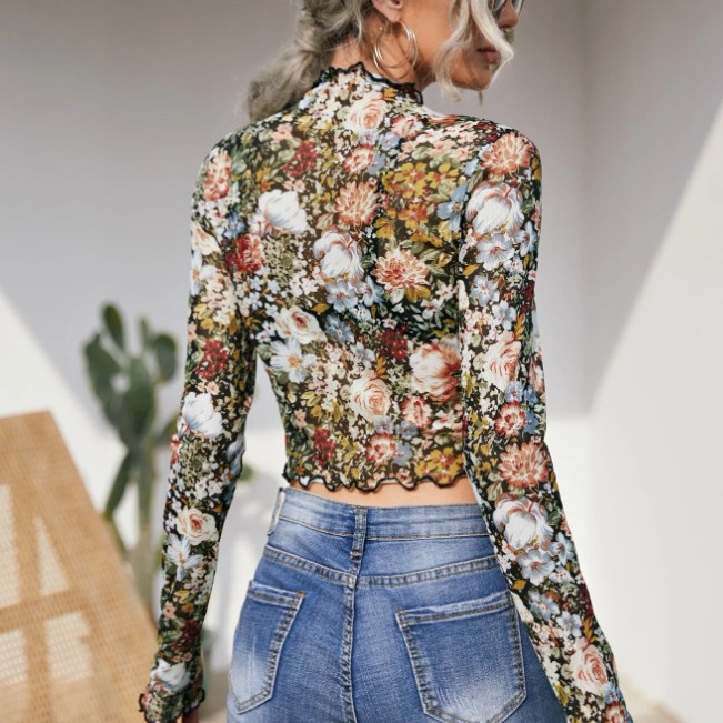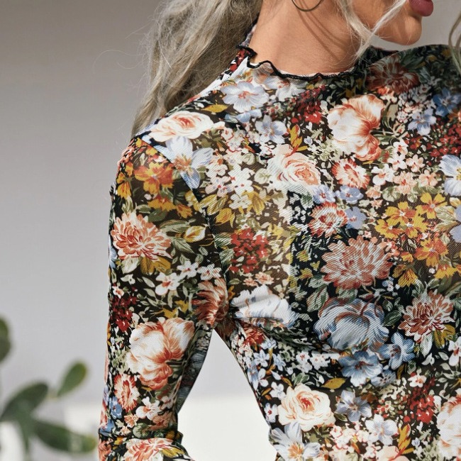 Product information: Pattern: plants and flowers Color: color, mixed color Size: S,M,L,XL,XXL Style: pullover Sleeve type: regular sleeve Main fabric composition: Polyester Sleeve length: long sleeve