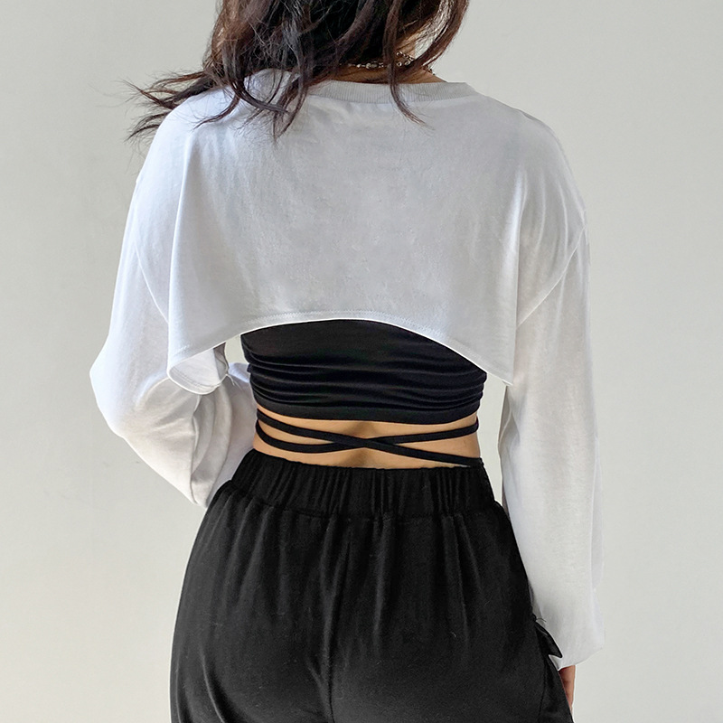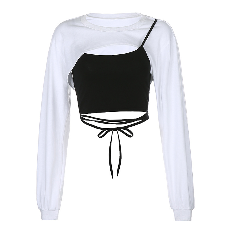 Popular elements: belt, navel, lace irregular, fake two-piece blouse women