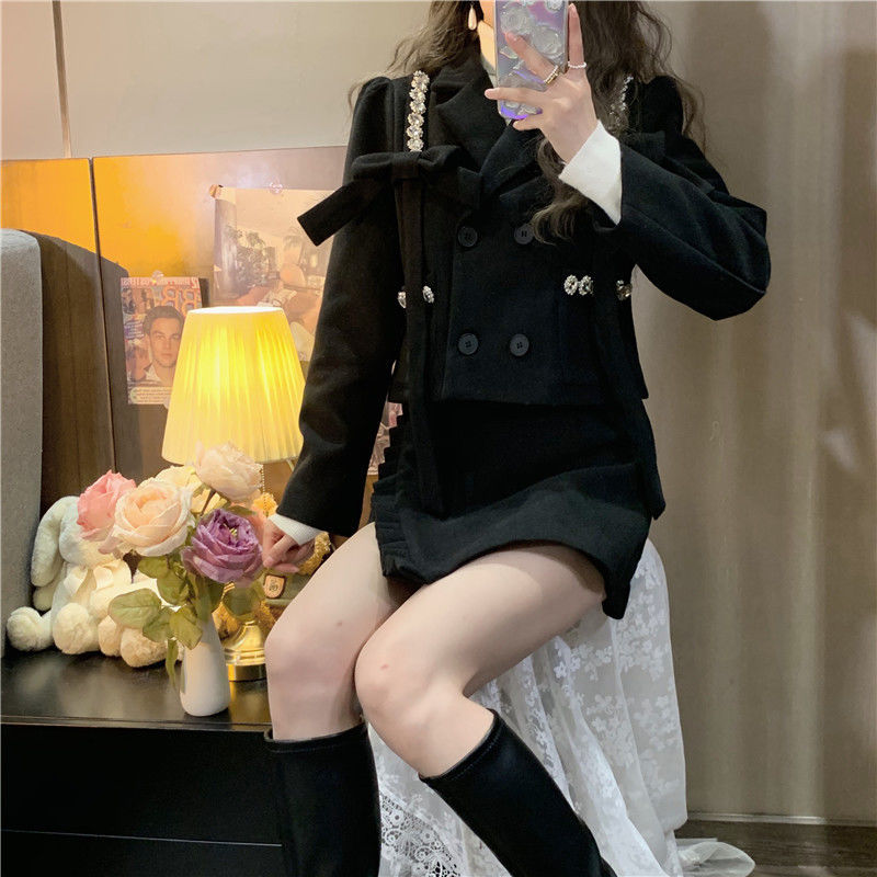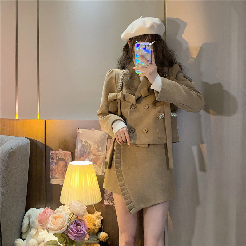 Color: black jacket + black skirt, white jacket + white skirt, khaki jacket + khaki skirt