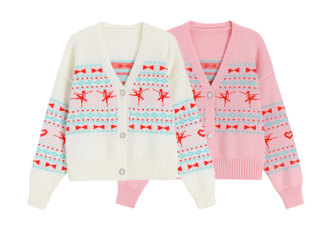 Style: sweetPattern: PrintSweater Technology: KnittingStyle: cardiganColor: white, pink