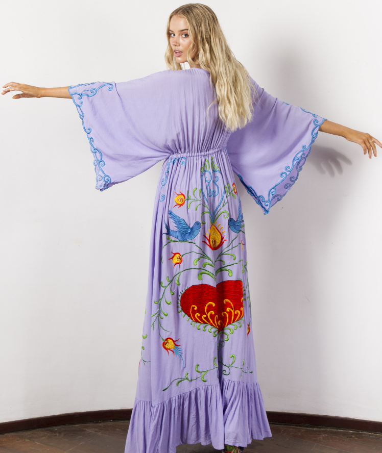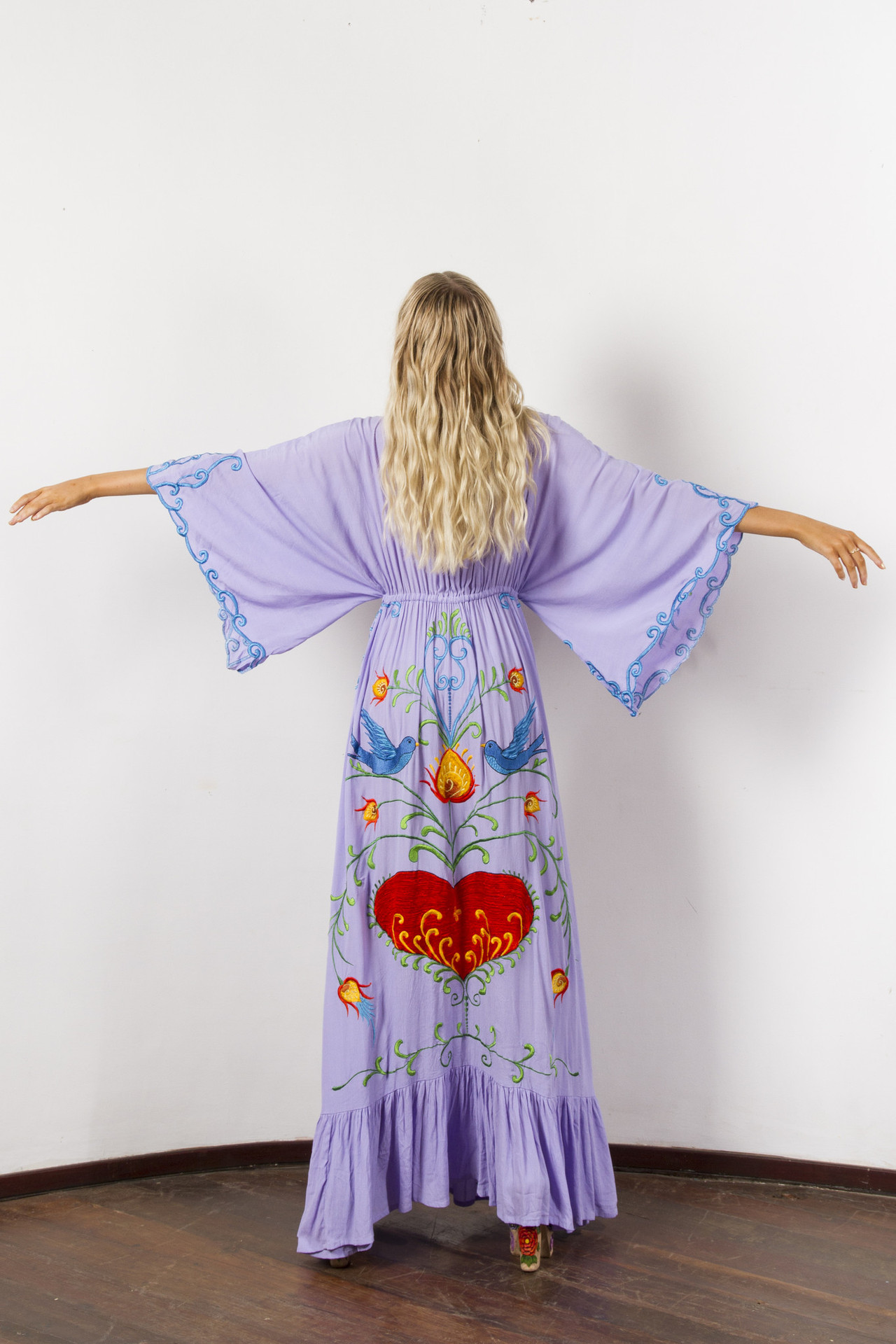 L Bust: 130cm Sleeve length: 40cm. Skirt length: 135cm.