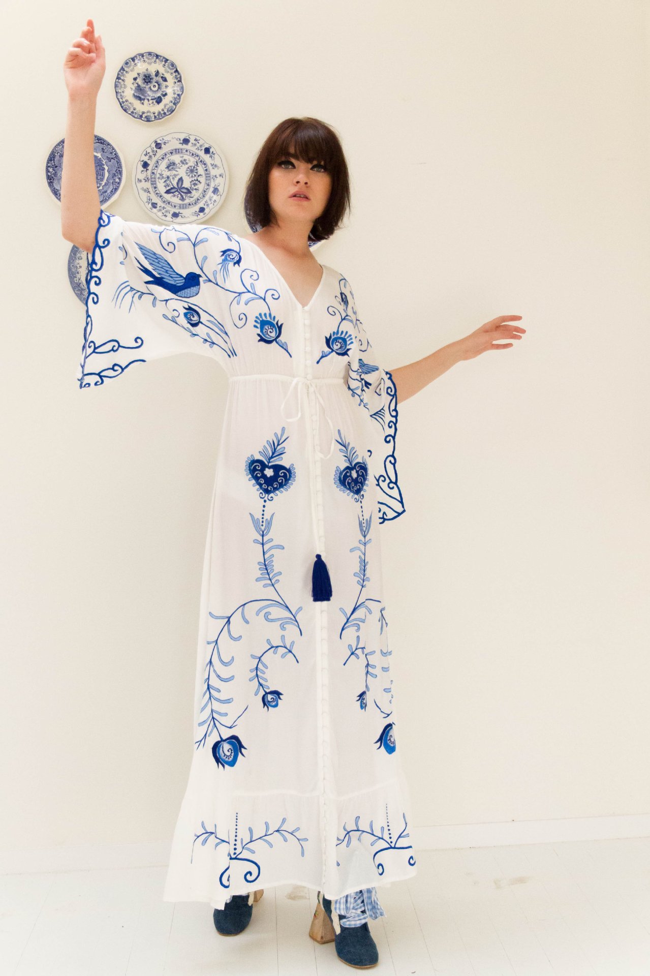 M Bust: 128cm Sleeve length: 40cm. Skirt length: 135cm.