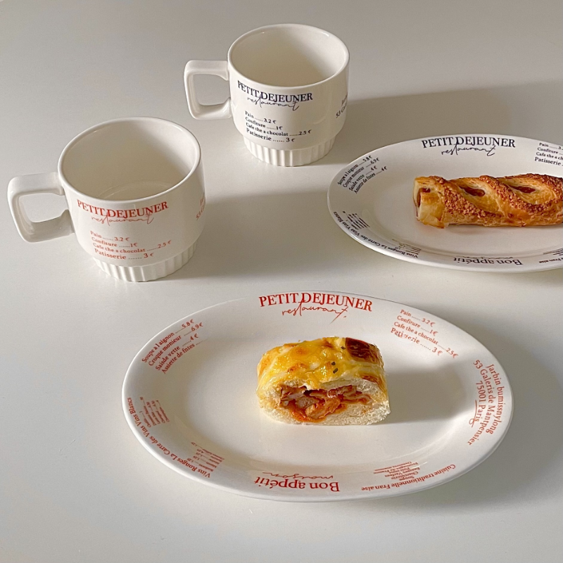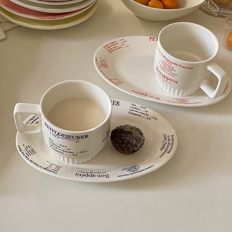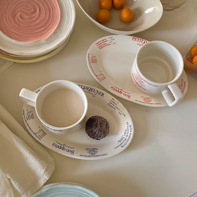 Color classification: Oval plate (red letter), oval plate (blue letter), mug (red letter), mug (blue letter)