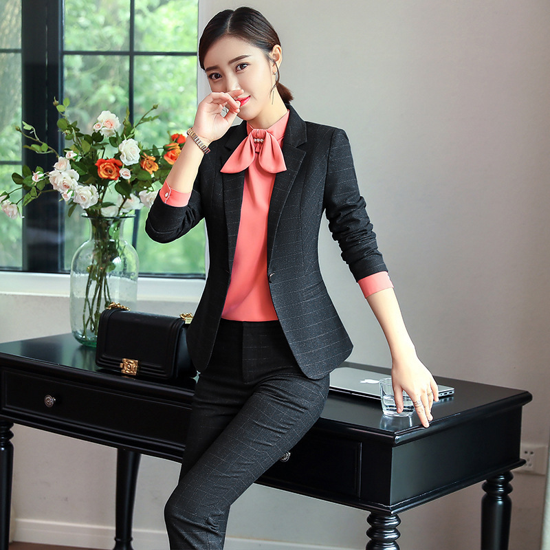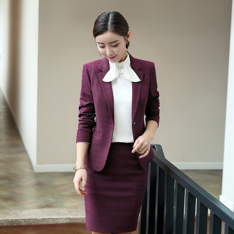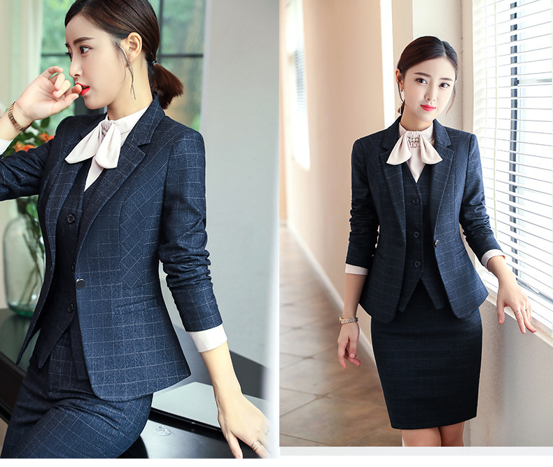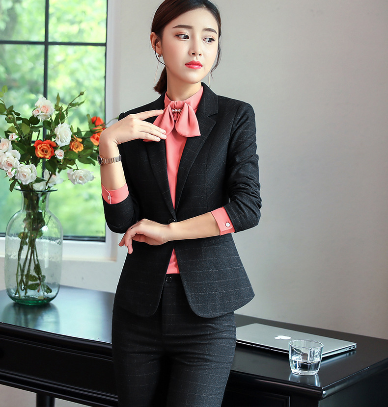 Color: black check suit+black skirt, blue check suit+blue skirt, wine red check suit+wine red skirt, black check suit+black pants, blue check suit+blue pants, wine red check suit+wine red pants