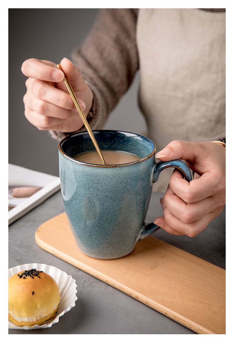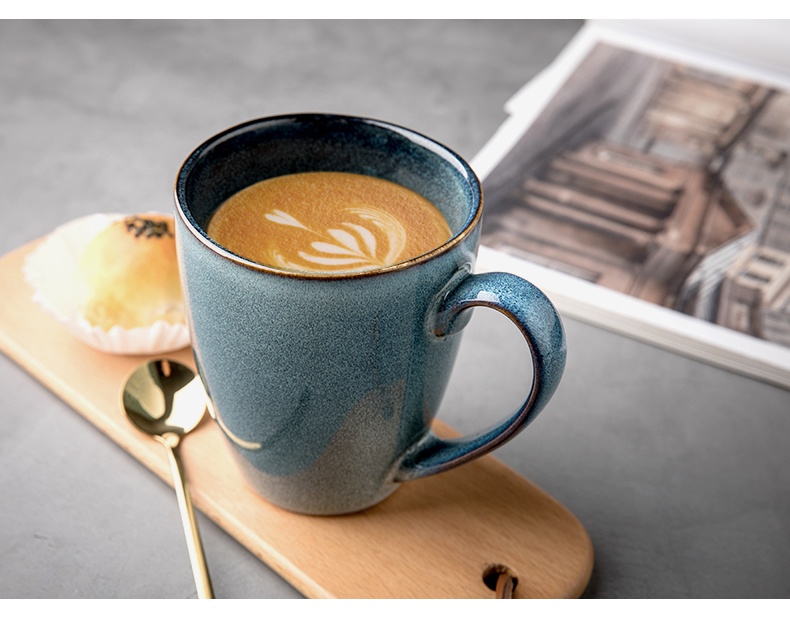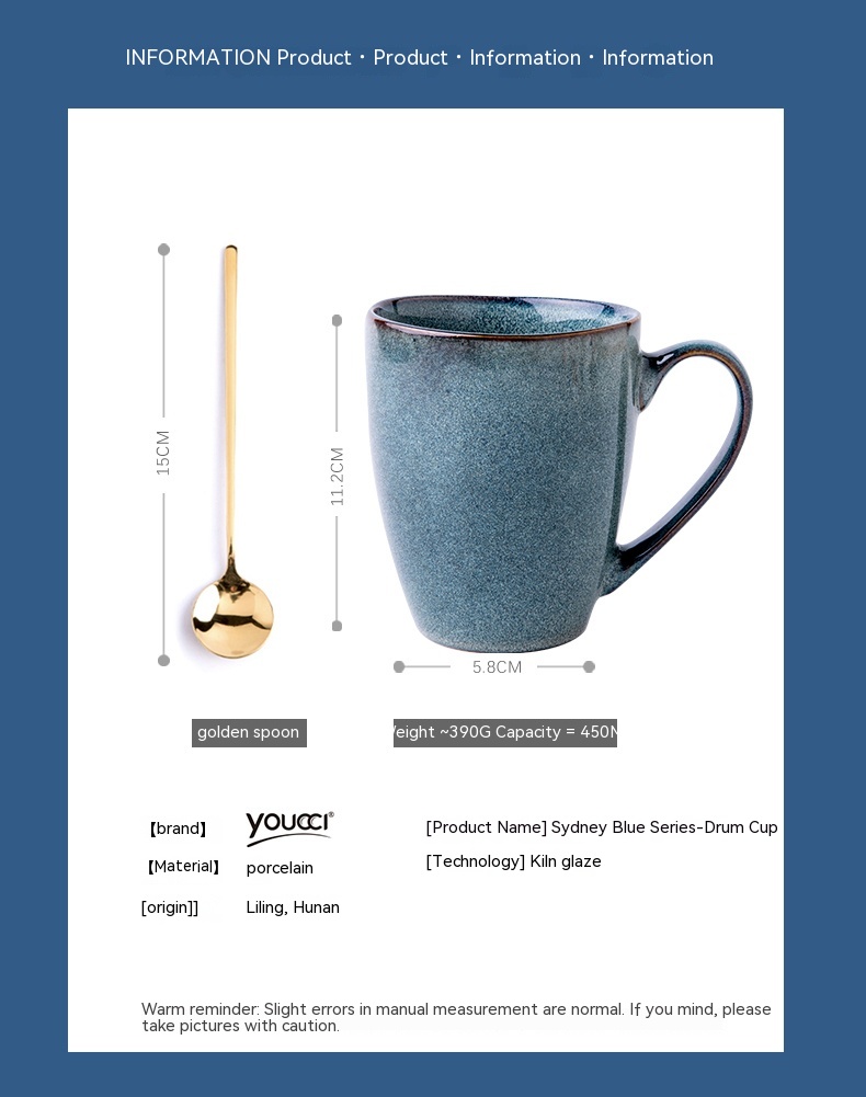 Product information:Color: Sydney blue-drum Cup, Sydney blue-drum Cup + 15cm gold spoonMaterial: CeramicApplicable object: CoffeePacking specification: SuitMicrowave oven: AvailableStyle: Nordic styleCapacity: regular