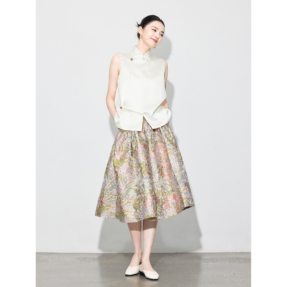 Product information: Pattern: abstract pattern Skirt type: pettiskirt Color: yellow skirt (in stock), white vest (in stock and fast delivery) Elasticity: Micro elasticity Main fabric composition: brocade Jacquard Size: S,M,L