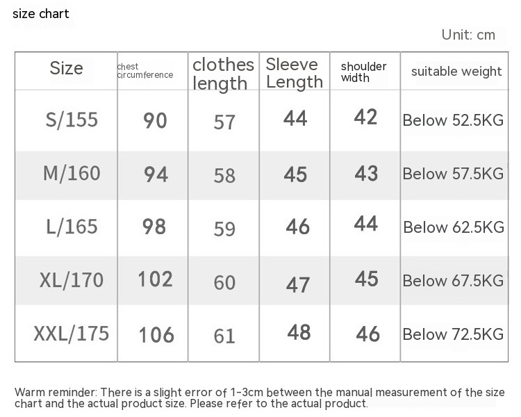 1. Asian sizes are 1 to 2 sizes smaller than European and American people. Choose the larger size if your size between two sizes. Please allow 2-3cm differences due to manual measurement. 2. Please check the size chart carefully before you buy the item, if you don't know how to choose size, please contact our customer service. 3.As you know, the different computers display colors differently, the color of the actual item may vary slightly from the following images.