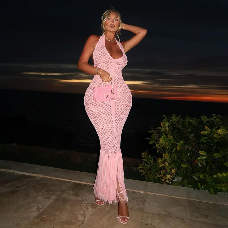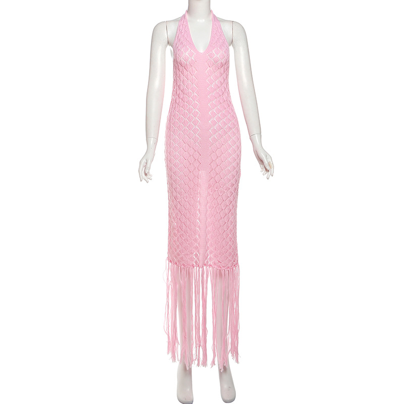 Product information: Color: pink, black, white Waist Type: Mid waist Size: S,M,L Popular elements: no back Main fabric composition: Polyester Sleeve length: sleeveless Skirt Category: Dress Craft: hand crocheted