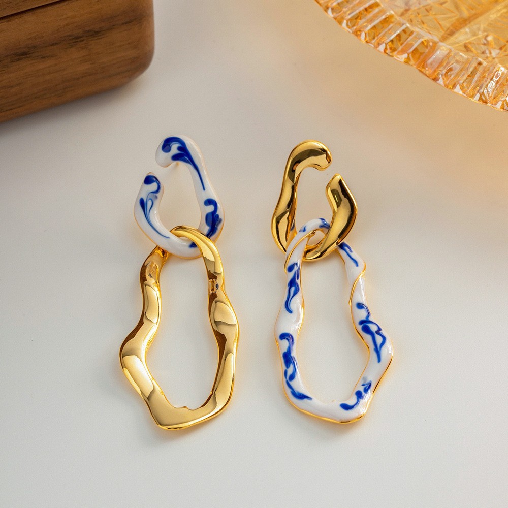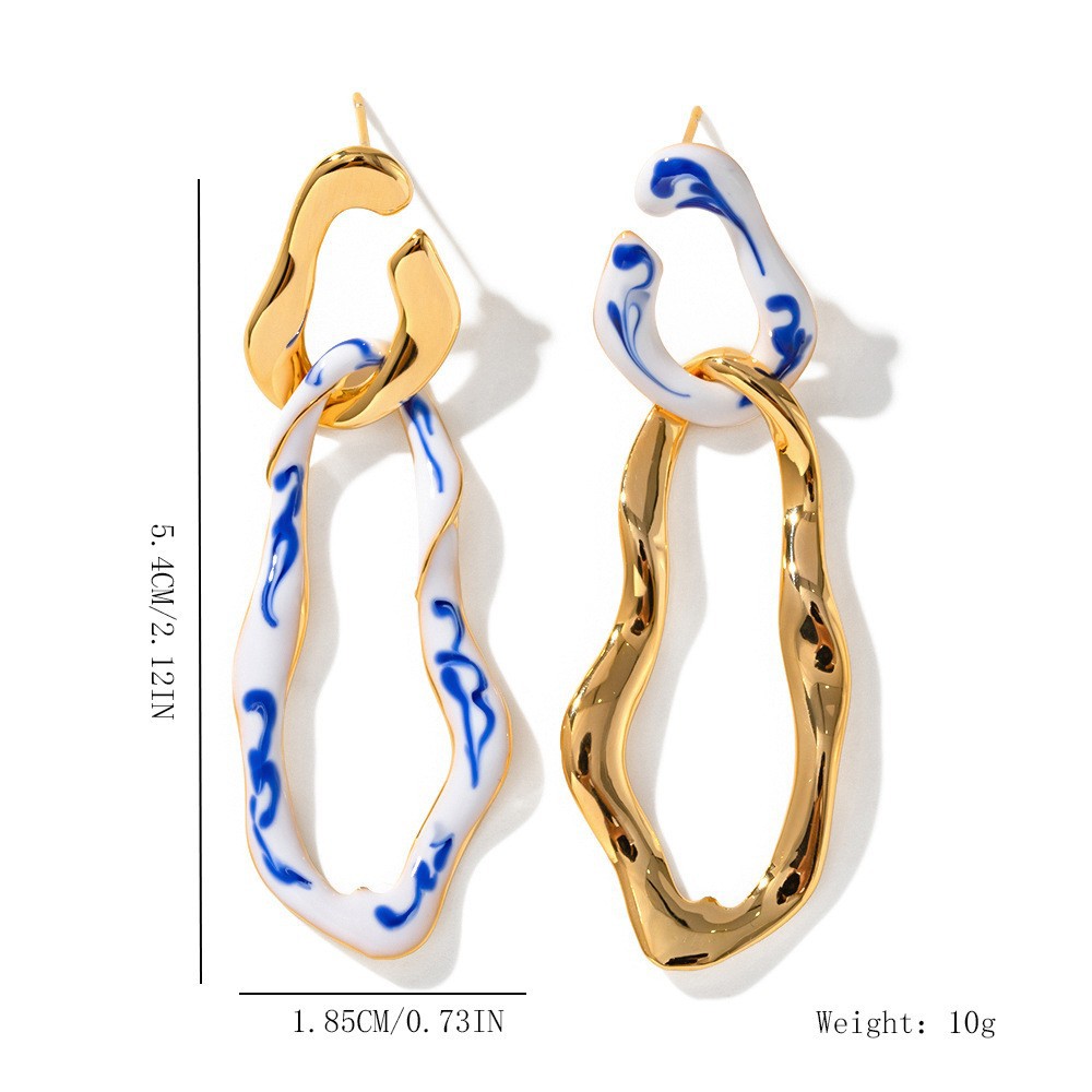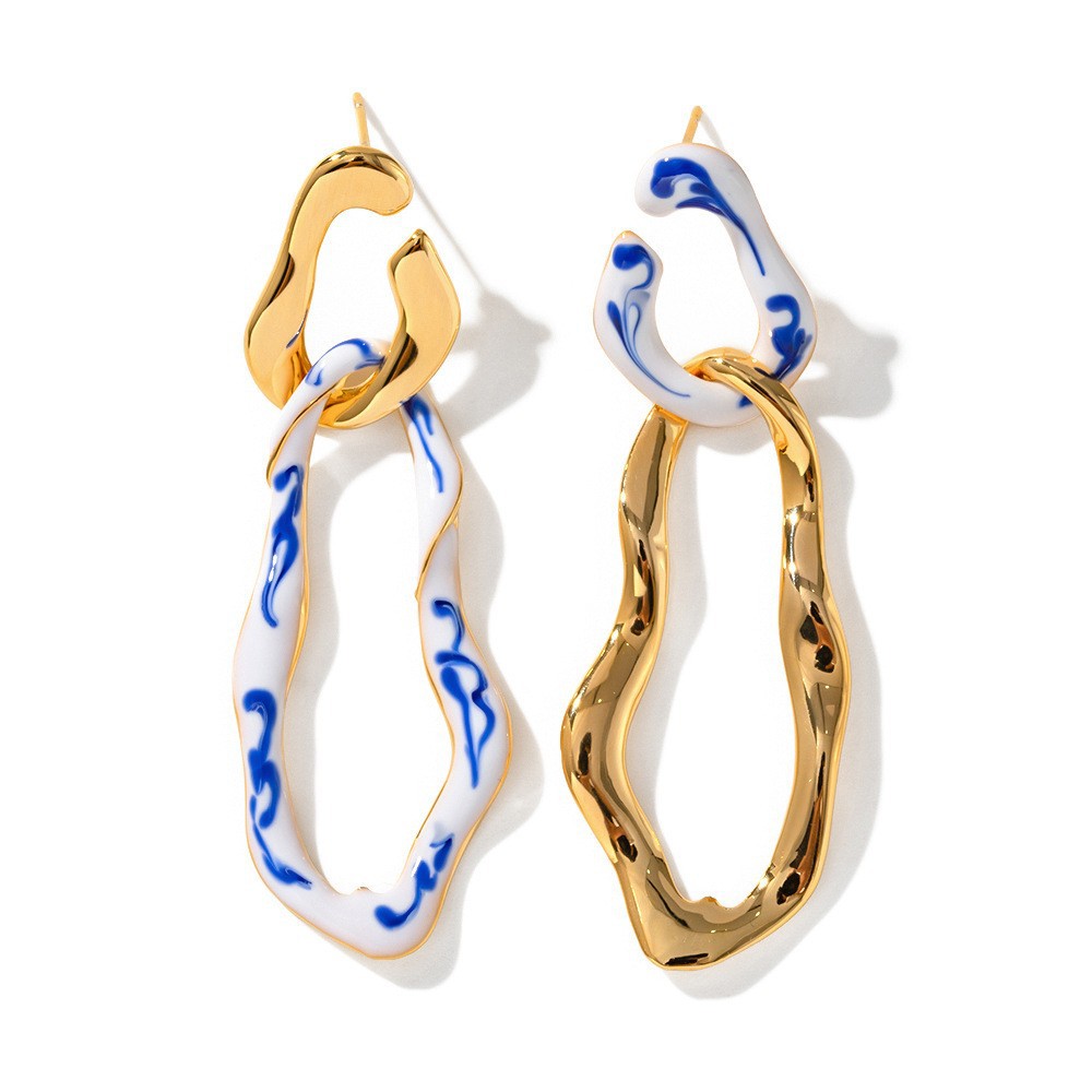 Fashion Blue And White Porcelain Pendant Women's Earrings