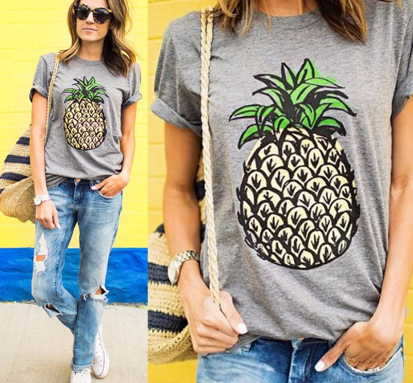 New Wild T-shirt Pineapple Print Casual Loose Short-sleeved Shirt