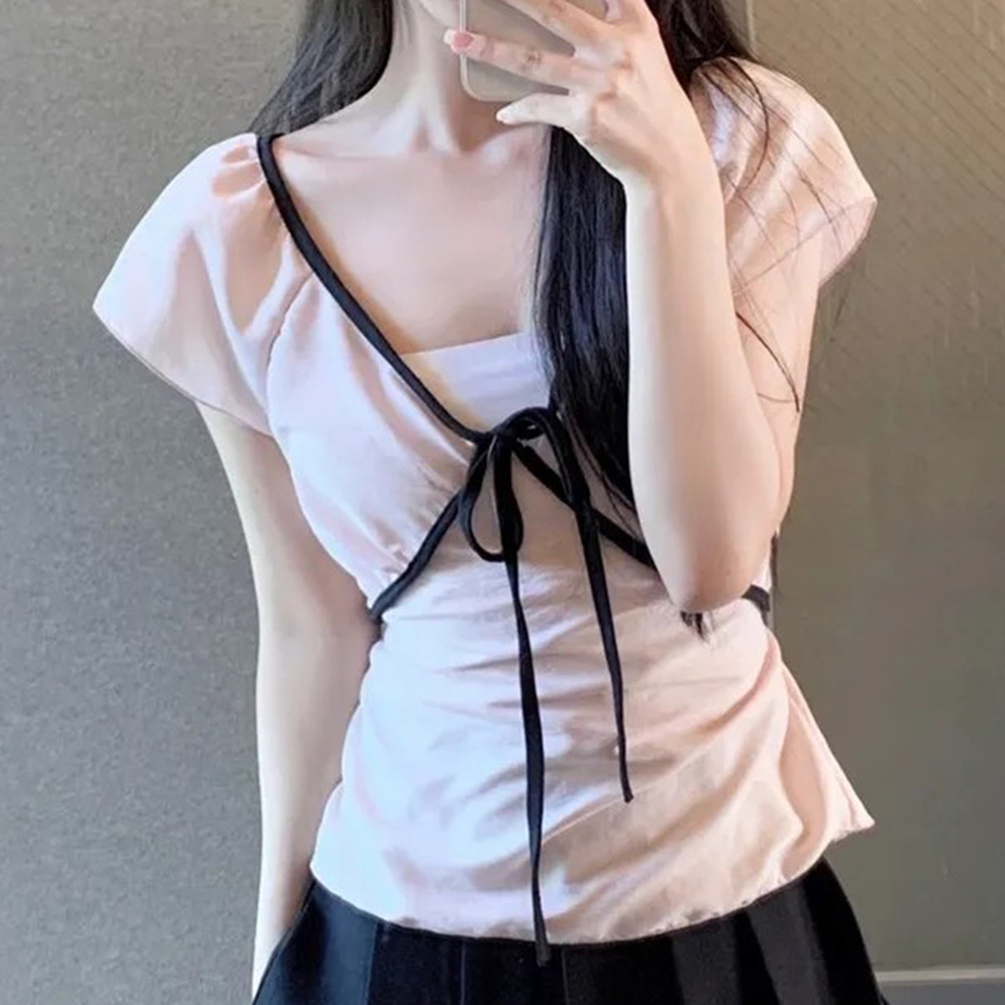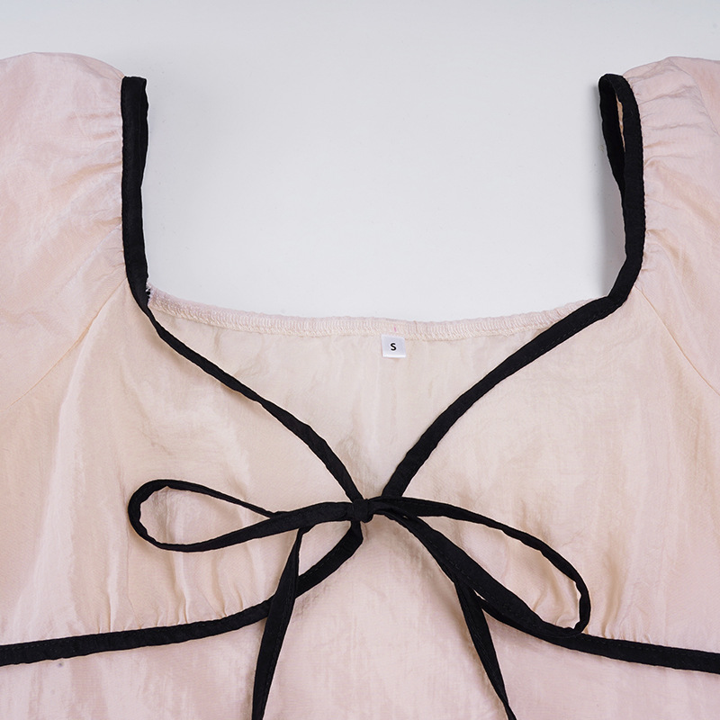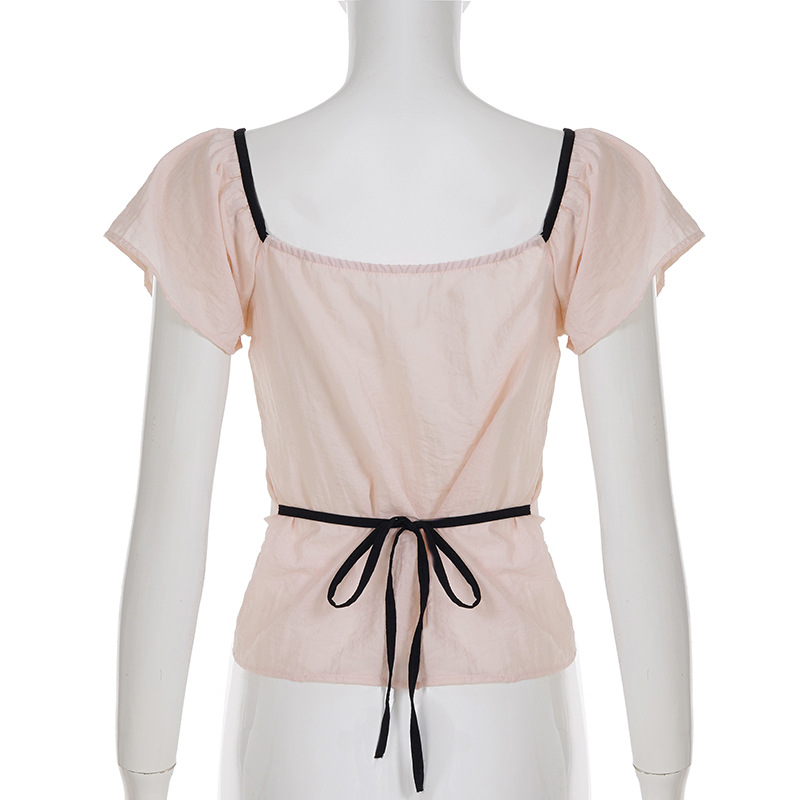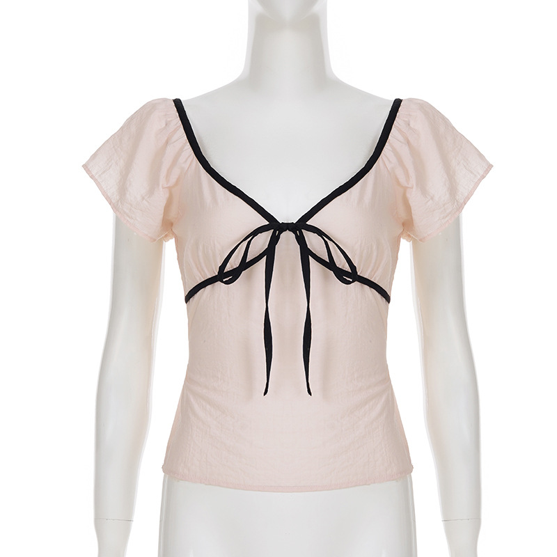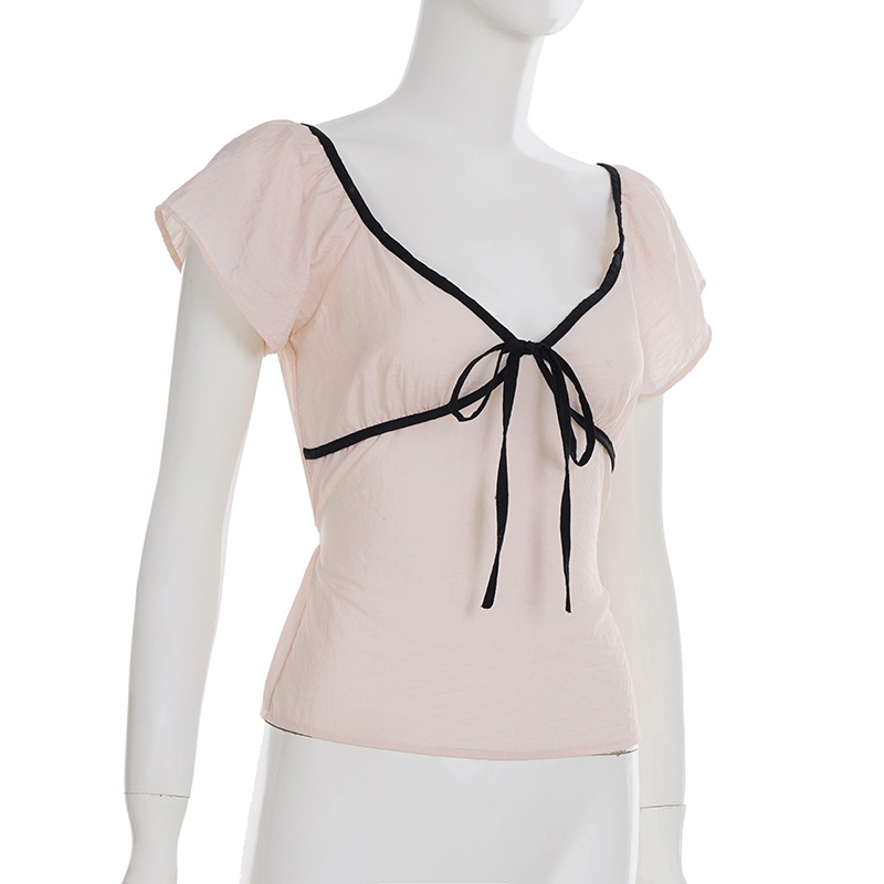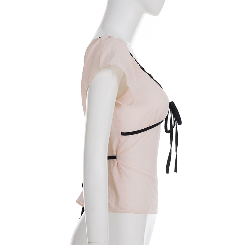 Product information: Fabric name: Polyester Color: light pink Size: S,M,L Version: slim fit Style type: fresh and sweet Sleeve length: short sleeve Popular elements: contrast color Style: pullover Style: sweet style