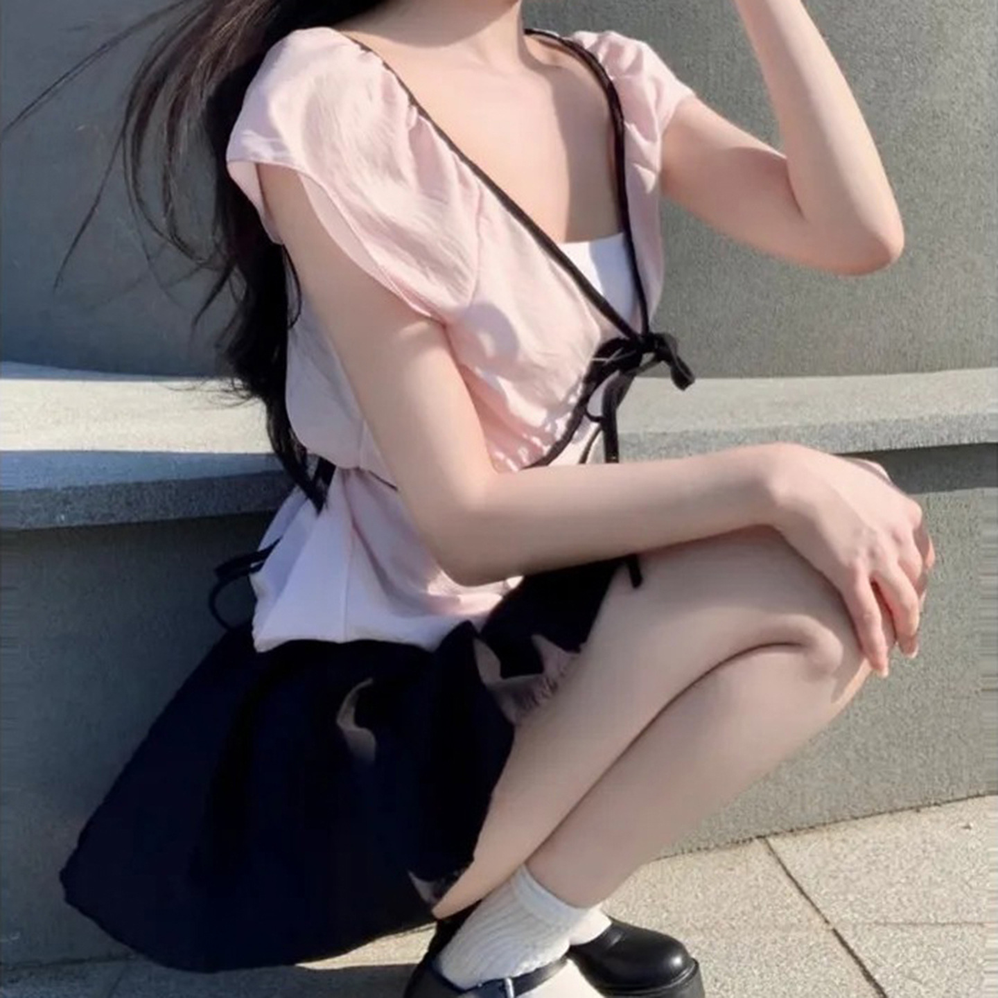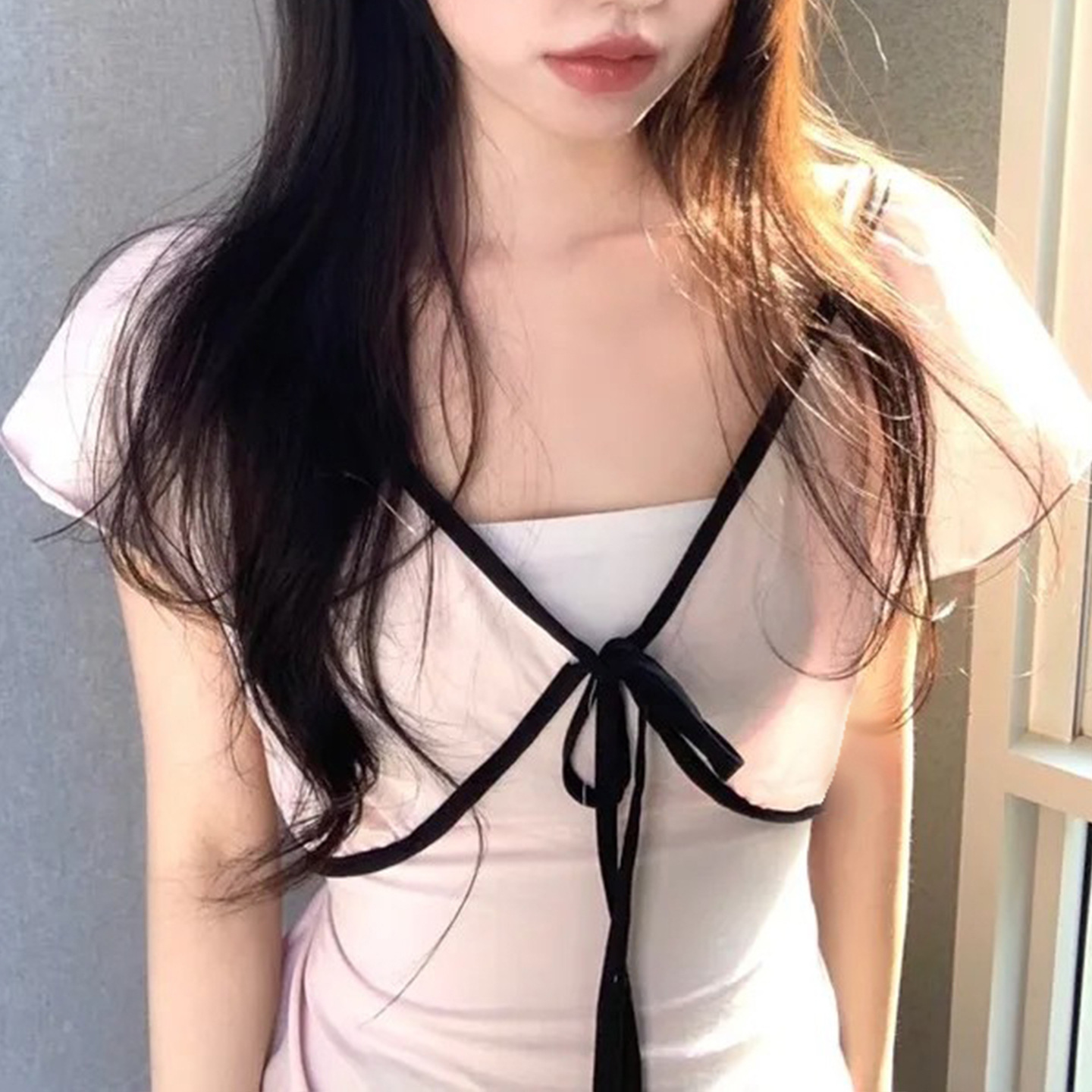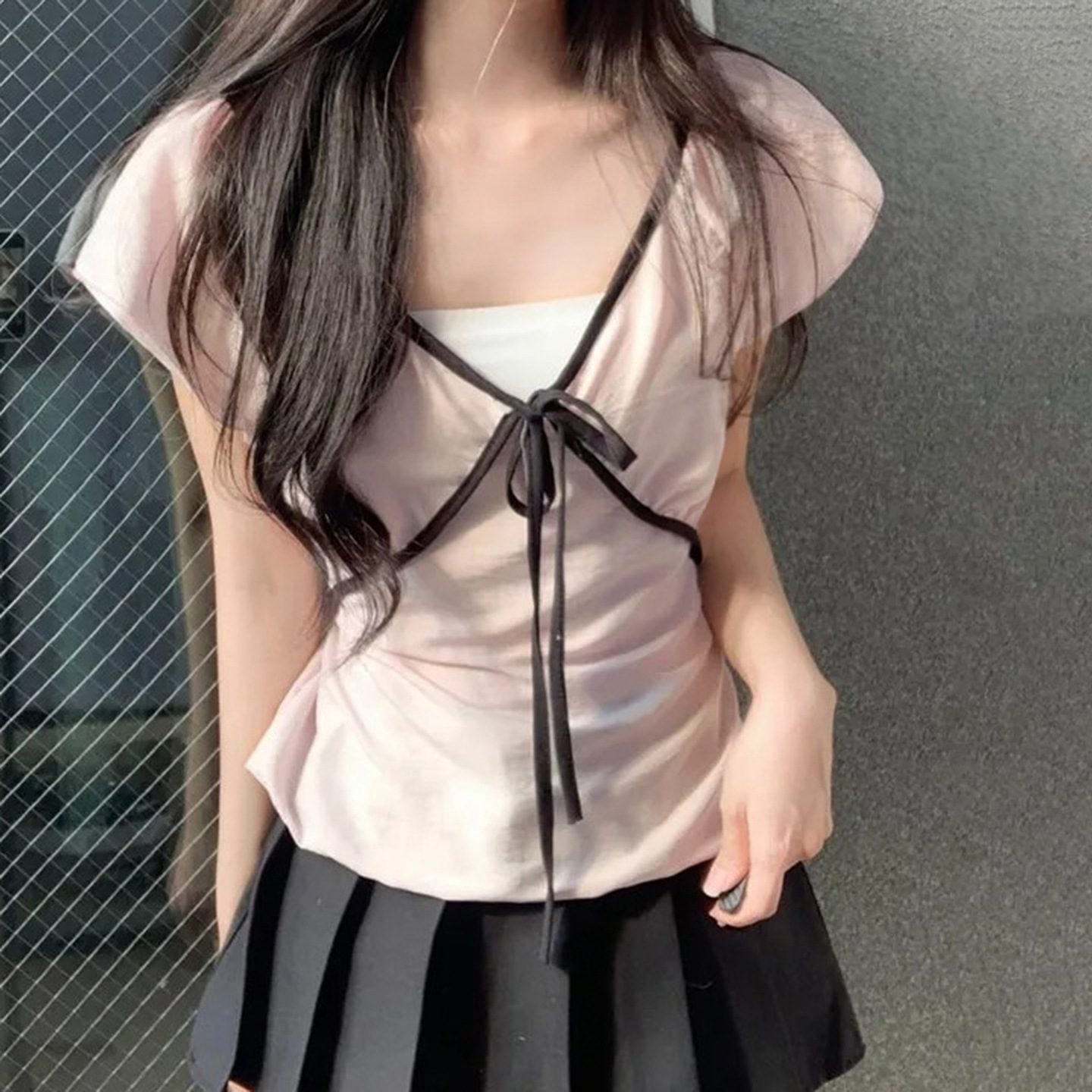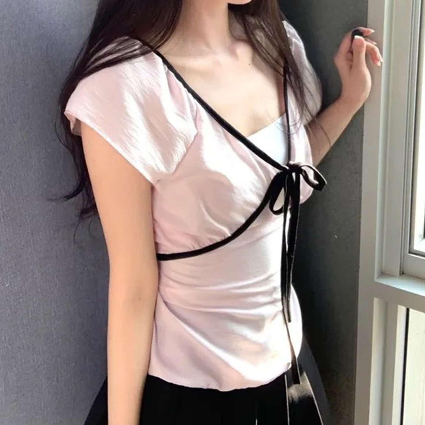 Product information: Fabric name: Polyester Color: light pink Size: S,M,L Version: slim fit Style type: fresh and sweet Sleeve length: short sleeve Popular elements: contrast color Style: pullover Style: sweet style
