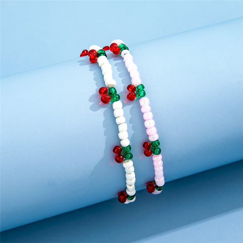 Fashionable Color Rice Bead Fruit Cherry Adjustable Anklet