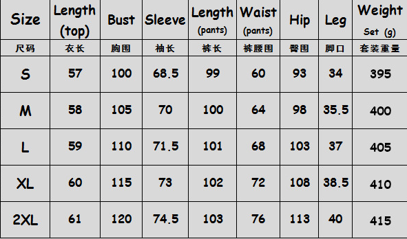 Size: S, M, L, XL, XXL Unit: cm
