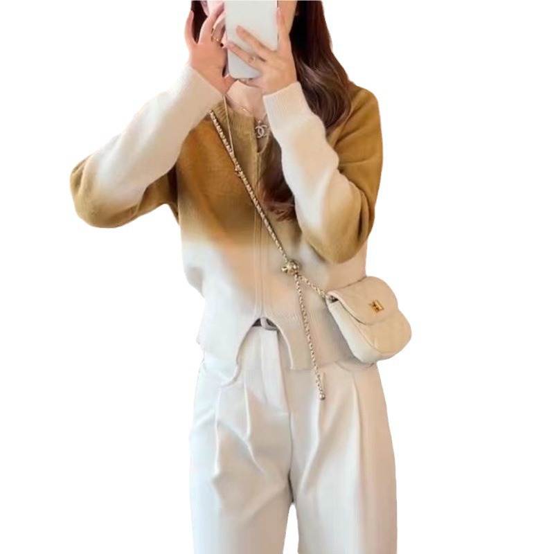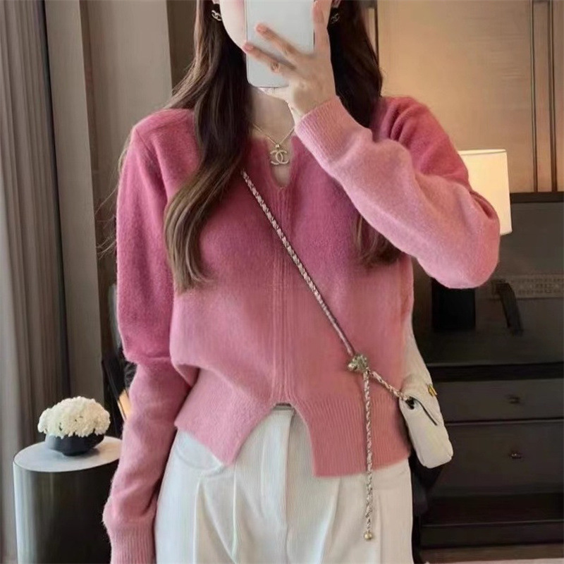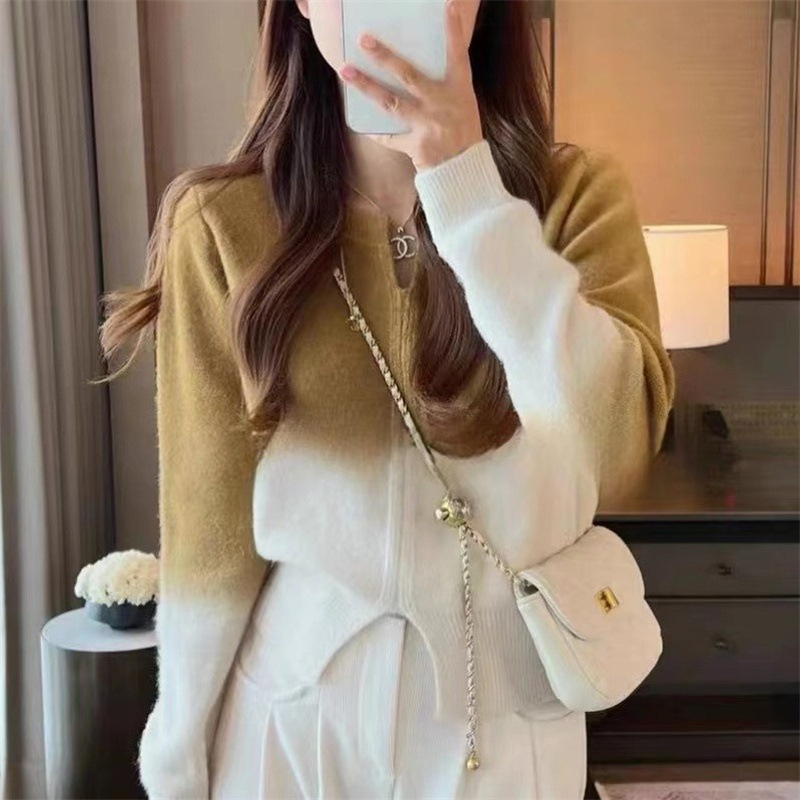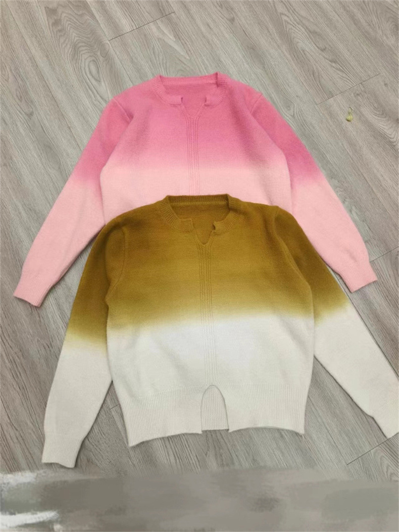 Gradient Color Knitted Long Sleeve Pullover Top Women