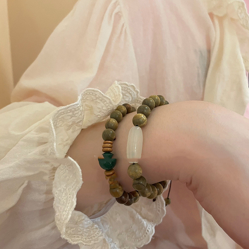 Women's Fashion Vintage Green Aromatic Sandalwood Bead Bracelet