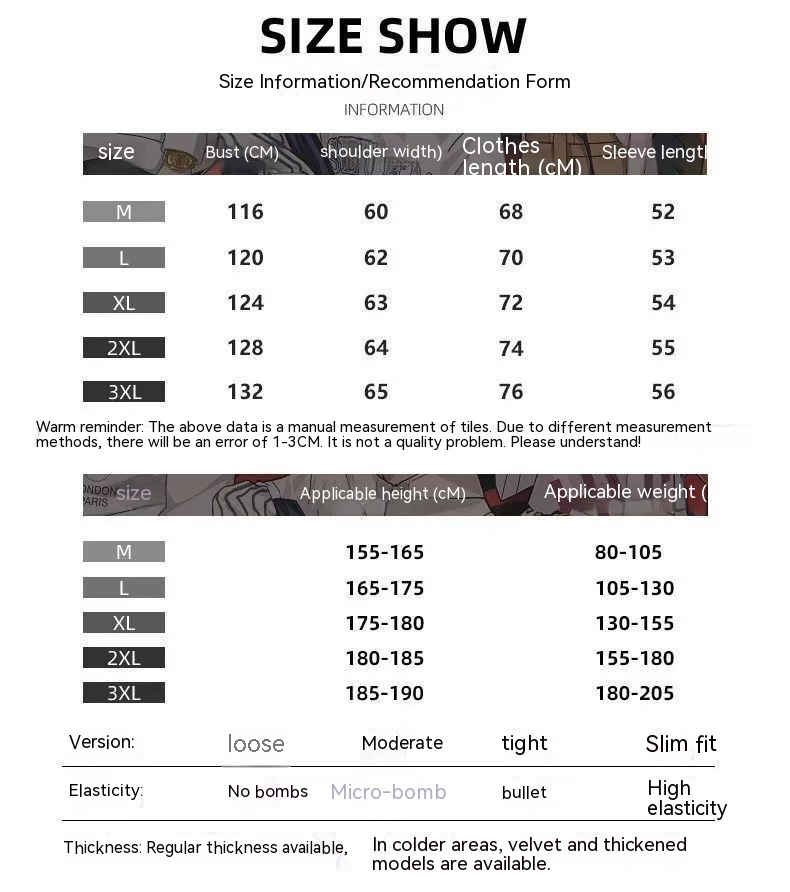 1. Asian sizes are 1 to 2 sizes smaller than European and American people. Choose the larger size if your size between two sizes. Please allow 2-3cm differences due to manual measurement. 2. Please check the size chart carefully before you buy the item, if you don't know how to choose size, please contact our customer service. 3.As you know, the different computers display colors differently, the color of the actual item may vary slightly from the following images.