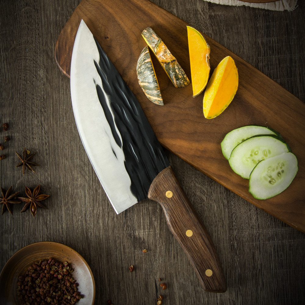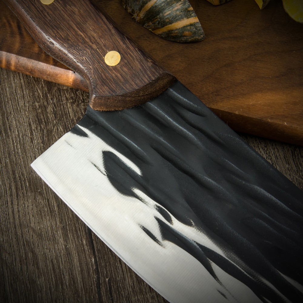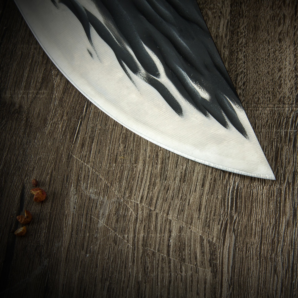 Hand forging: Workers with more than 30 years of experience use the natural knife sharpener mined from Mount Emei to manually cut the meat knife. Compared with kitchen knives made by mechanical means, these knives have a longer service life.