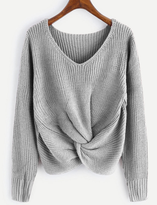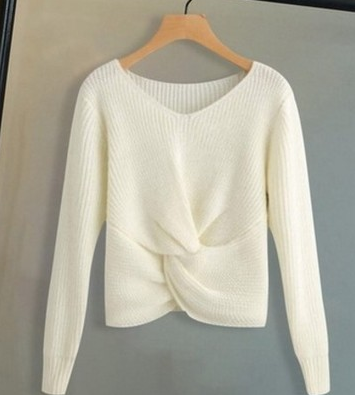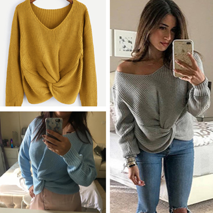 Autumn Sweater Women Casual Winter Woman Sweater Knitting Long Sleeve Solid Color V-neck Sexy Cross Knotted Panel Sweater