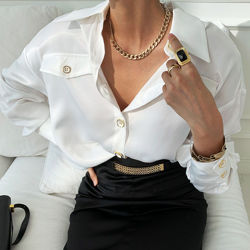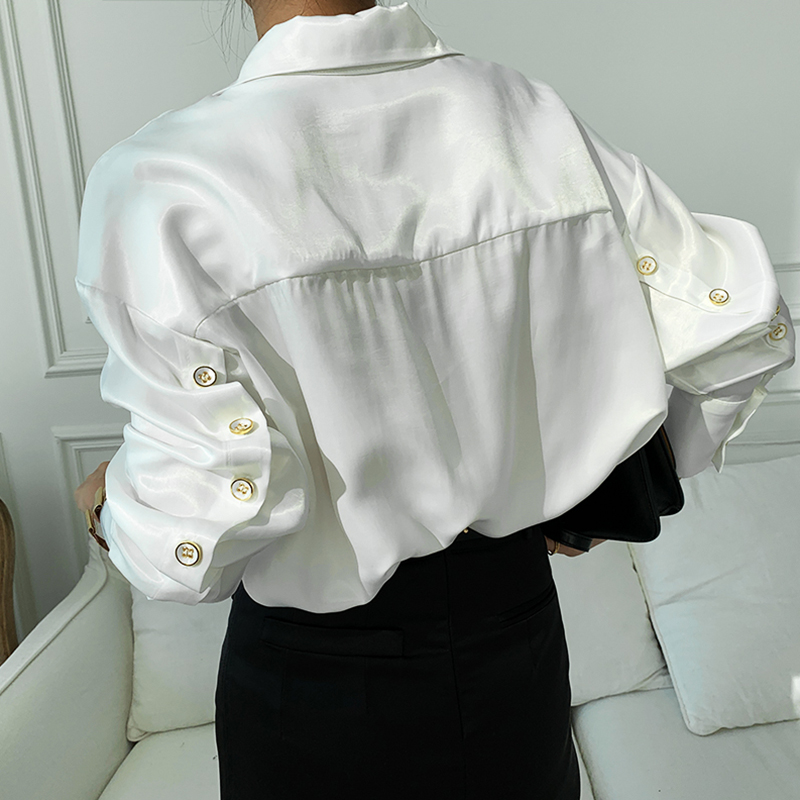 Temperament Lapel Chic Button Design Long-Sleeved Shirt
