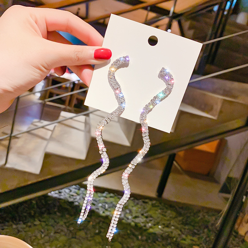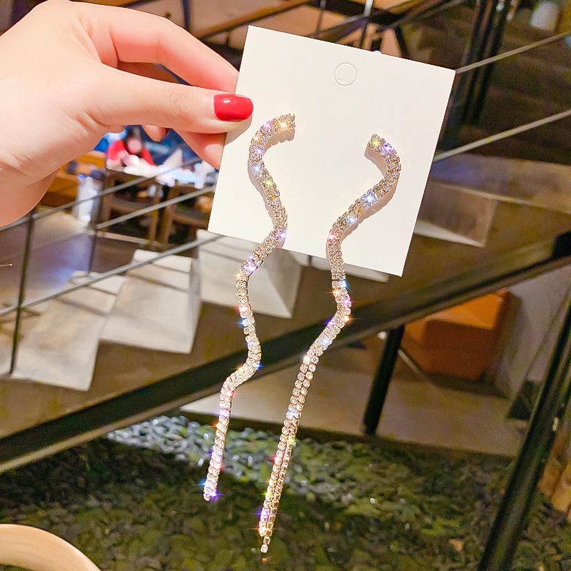 925 Silver Needle Exaggerated Personality Full Diamond Earrings