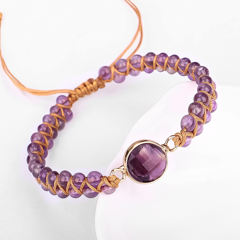 Cross-border New Bracelet With Faceted Amethyst Hand-woven