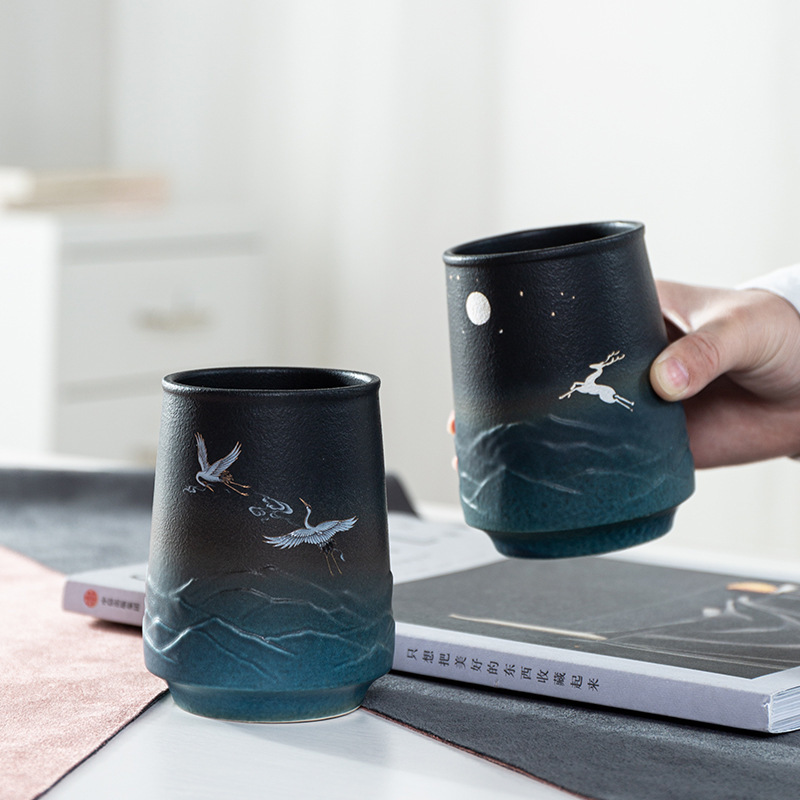 Style: Chinese styleMaterial: ceramicColor: Elk, CraneVolume: 310mlSize: Width about 7.8cm, height about 10.2cm