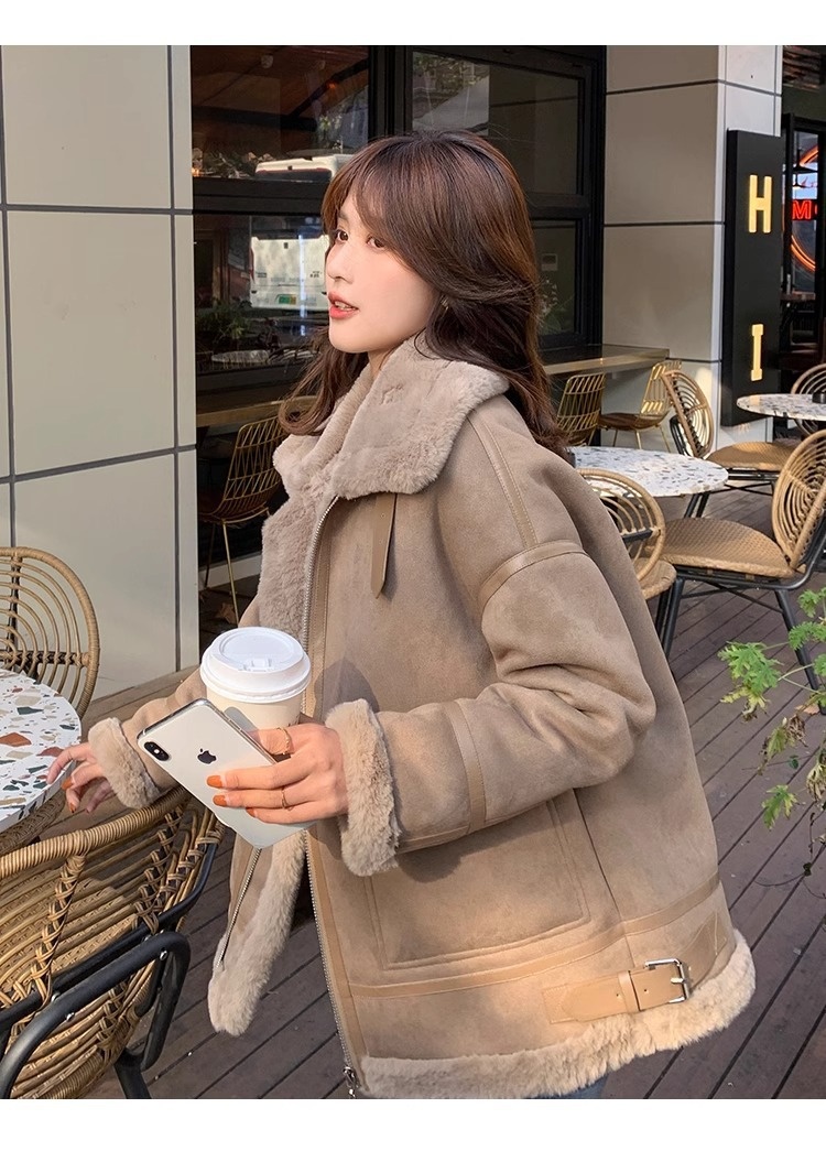 Fur Integrated Berber Fleece Coat Women